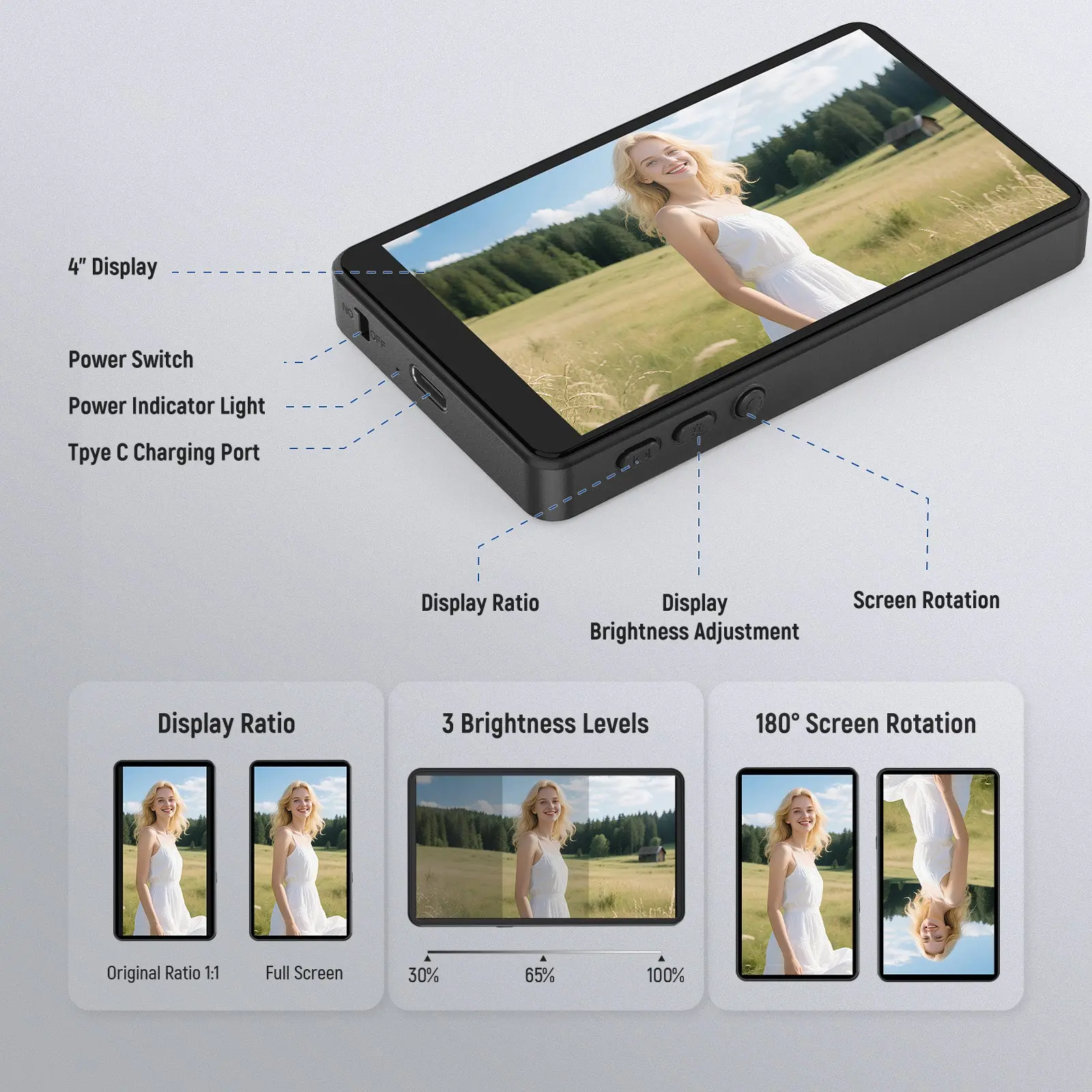 ·Lightweight & Portable for Travel Filming- This compact 4" selfie monitor fits easily into your pocket or camera bag for carrying around, or you can always attach it to your phone back, as it's only 3.58oz/101.4g. It is the essential and perfect companion for content creators and influencers
