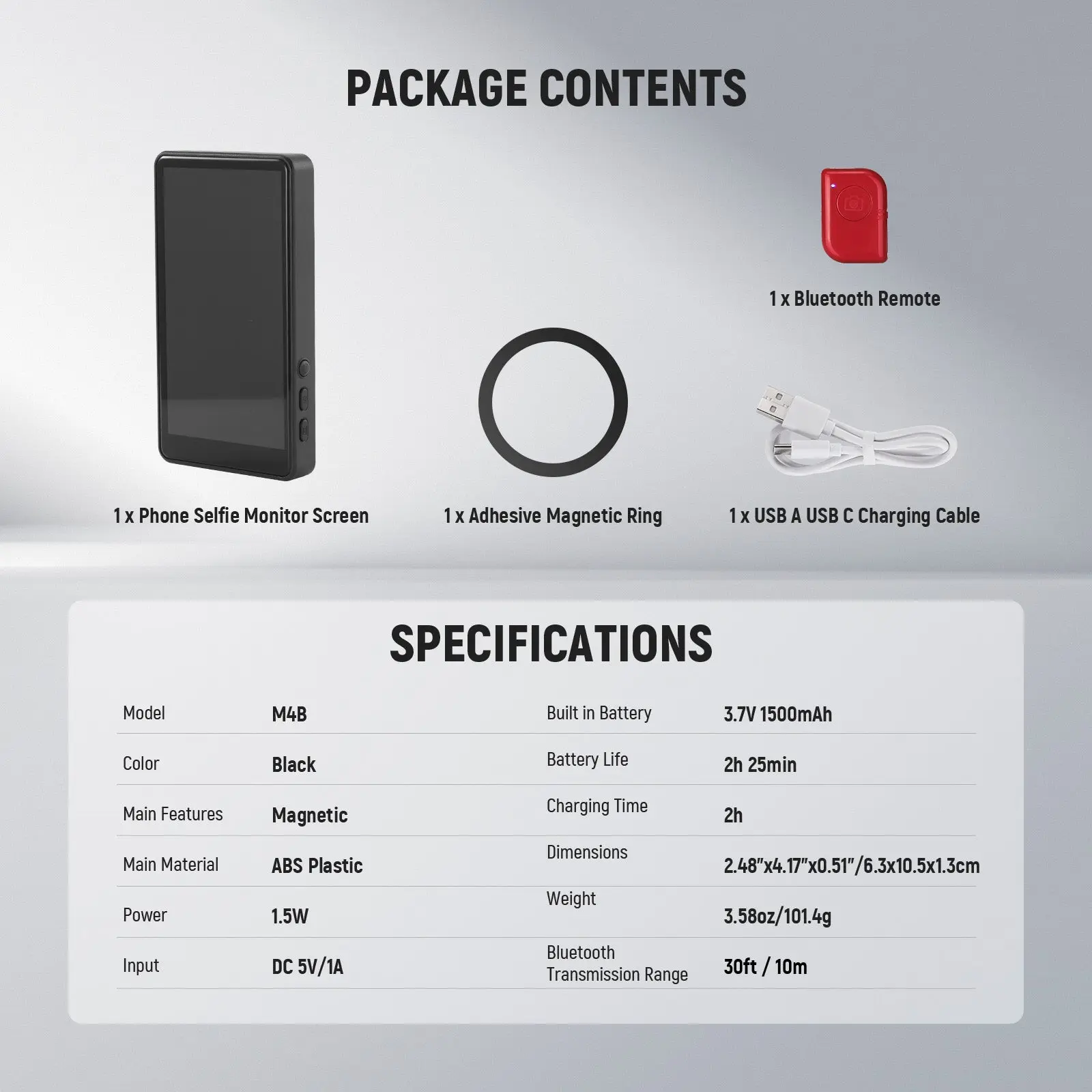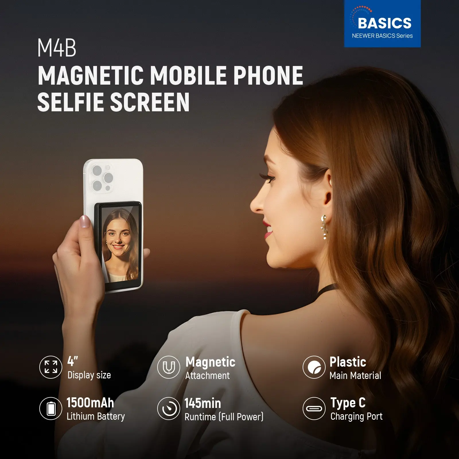·Introducing NEEWER BASICS- Simple and practical, NEEWER BASICS is an economical product line that focuses on essential functions and designs, without unnecessary extras and materials. The M4B is a magnetic phone selfie monitor screen to improve selfie & video quality by enabling the use of the rear camera for front facing shots, easy to check framing for satisfying results