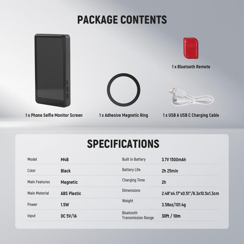 ¡Introducing NEEWER BASICS- Simple and practical, NEEWER BASICS is an economical product line that focuses on essential functions and designs, without unnecessary extras and materials. The M4B is a magnetic phone selfie monitor screen to improve selfie & video quality by enabling the use of the rear camera for front facing shots, easy to check framing for satisfying results