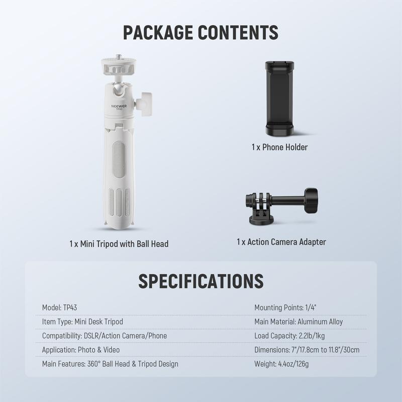 ·Main Features: 360° Ball Head & Tripod Design
