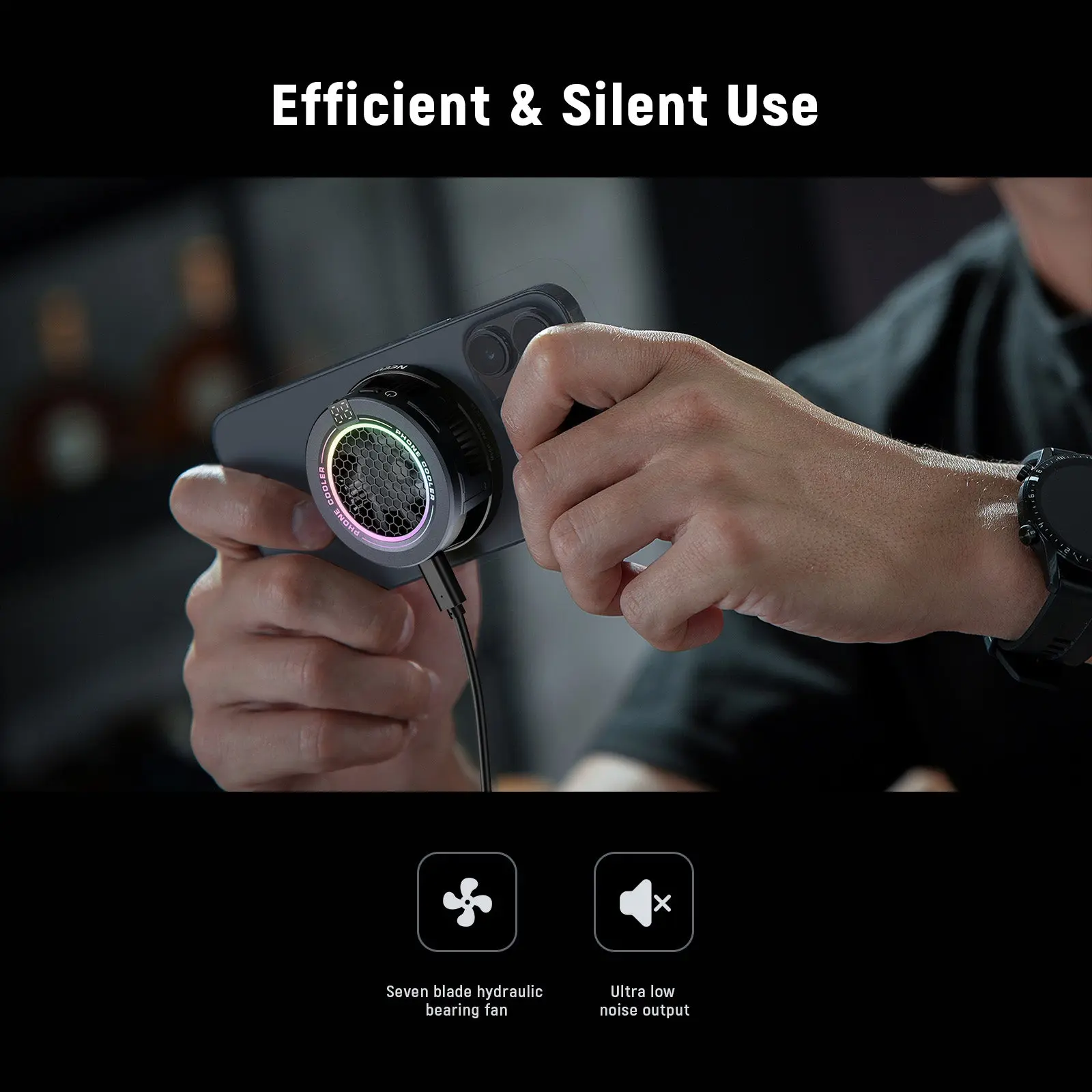 ·Efficient & Silent Use- Equipped with a seven blade hydraulic bearing fan, the phone fan delivers effective cooling while ensuring ultra low noise output. Whether in High Speed mode or Intelligent mode, the fan operates at low decibel levels, allowing you to maintain focus during gaming or work without distraction as content creator essential and influencer must have