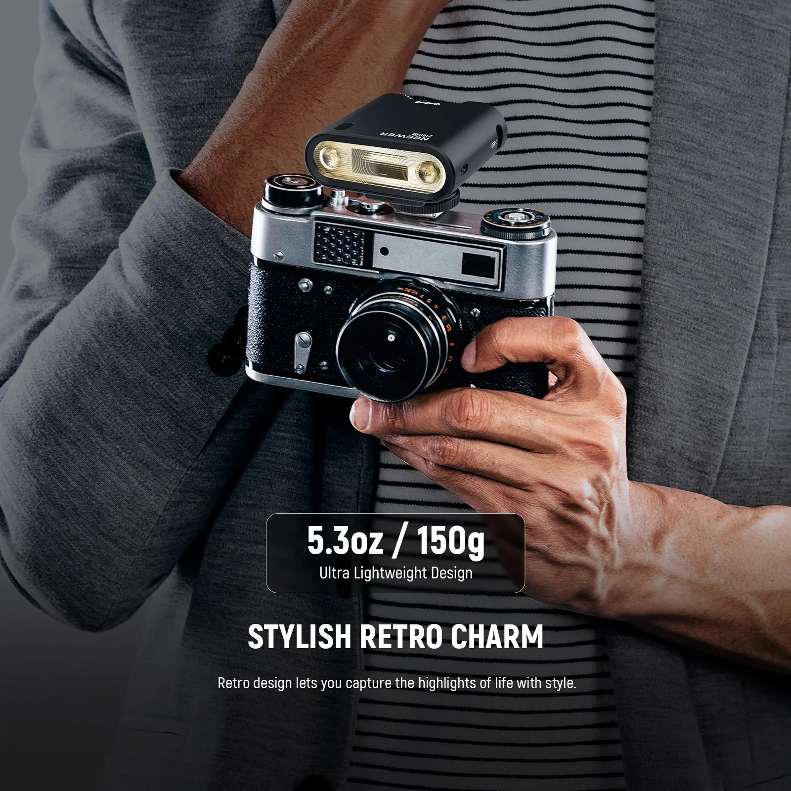·Stylish Mini Camera Flash- Introducing our mini flash, a perfect blend of vintage charm and modern functionality. With its unique rotary dial and sleek display screen, the camera flash adds a touch of elegance to your photography gear, and naturally be part of your stylish outfit. Weighing just 5.3oz / 150g, the palm sized flash easily mounts on your camera, great for street photography without causing hand fatigue, and easily fits the carrying bag for on the go