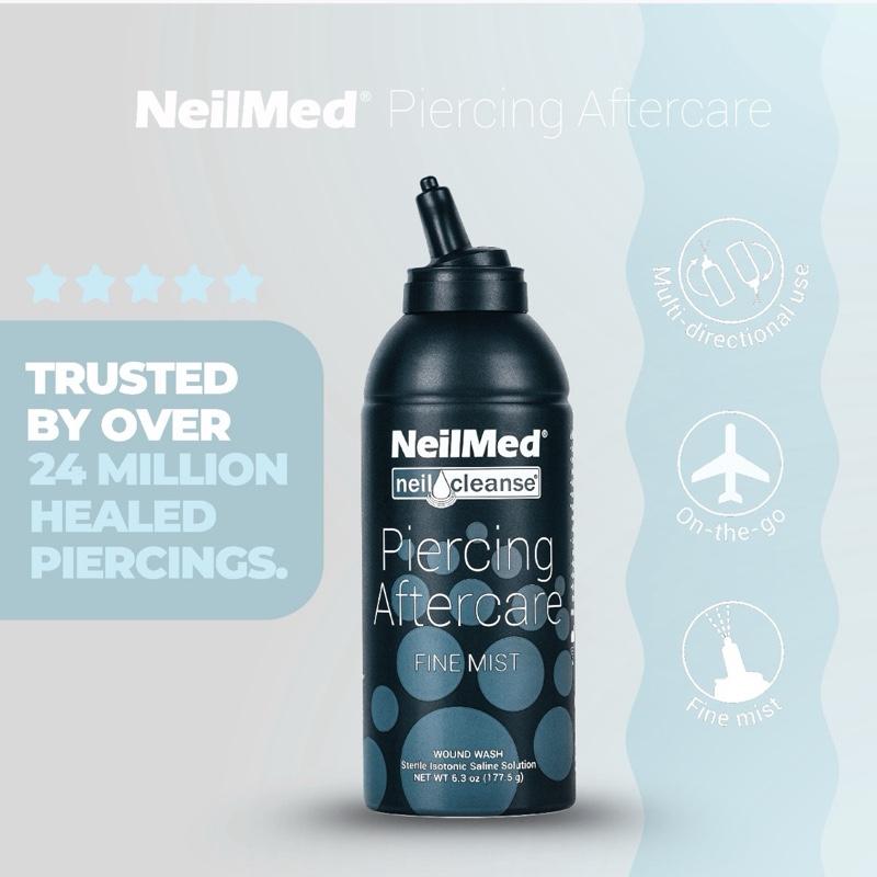 NeilMed XL Piercing Aftercare Fine Mist Spray provides a natural, vegan, and preservative-free solution for easy, gentle healing. Perfect for cleaning new and healed body piercings. The XXL large bottle will last you the entire healing timeline of your piercing aftercare.