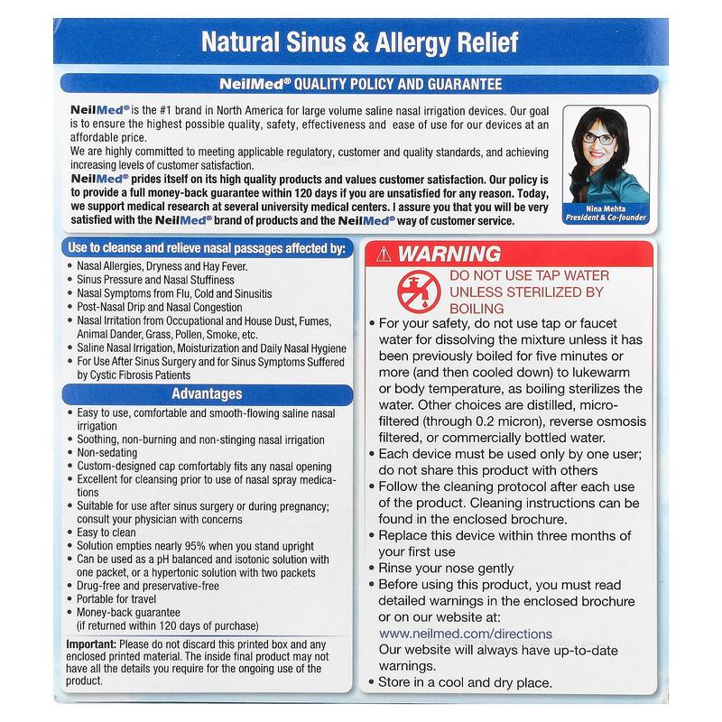 IngredientsNeilMed The Original Patented Sinus Rinse Kit 50 Premixed Packets 1 Kit