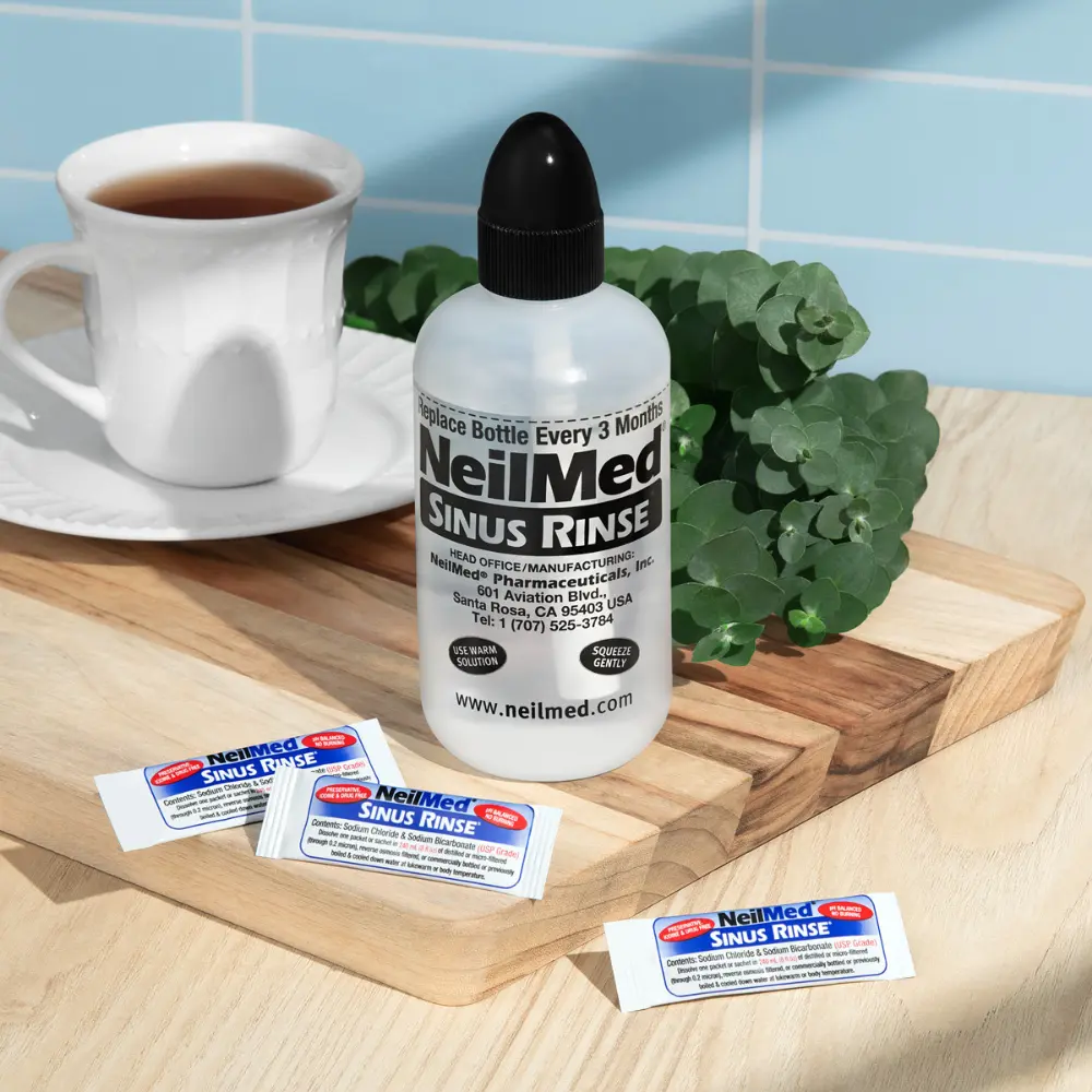NeilMed® SINUS RINSE™ is an easy squeeze bottle system that allows you to deliver the saline solution with positive pressure to clean the nasal passages thoroughly, while maintaining your head in an upright position. You have complete control of the pressure and volume of solution, ensuring a gentle, soothing and therapeutic experience. Daily rinsing is safe and will keep your nasal passages clean, healthy and open.