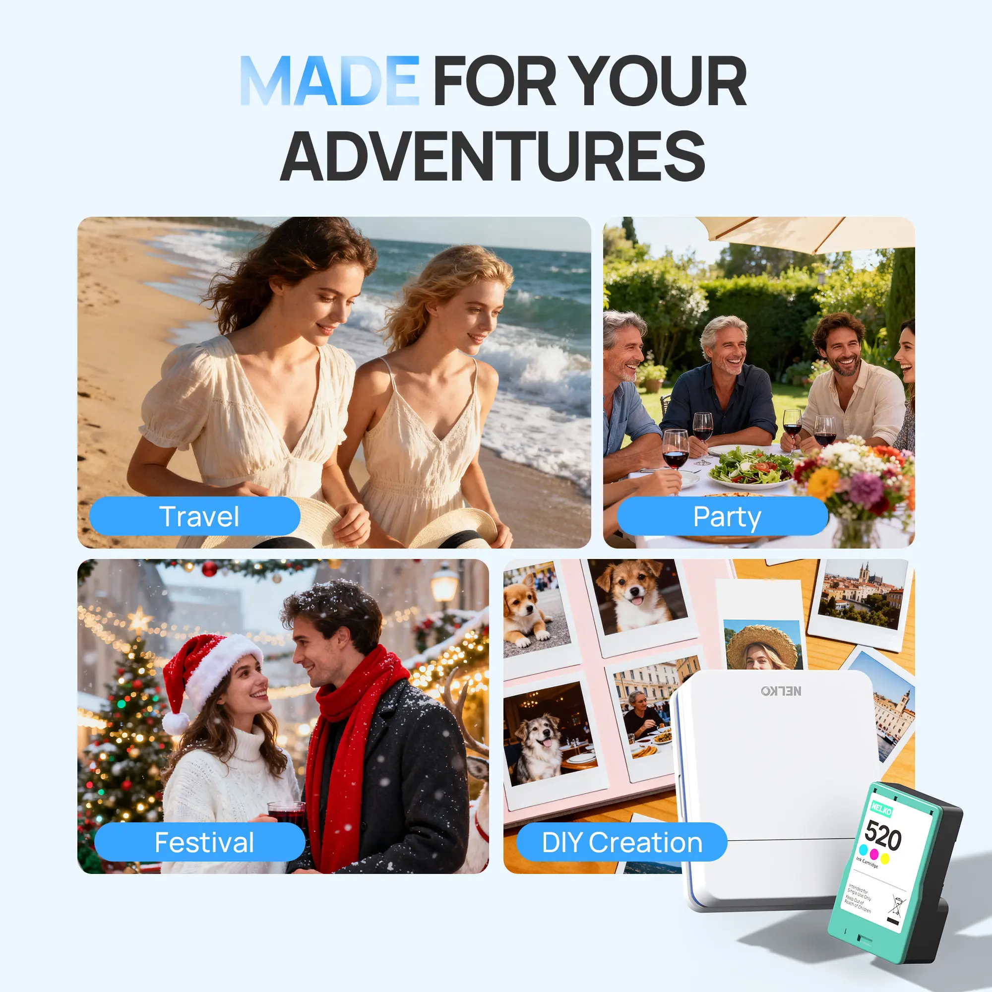 ·High-Yield Printing Solution: Get more out of every cartridge! A single Nelko 520 cartridge delivers an impressive 80 vibrant color photos, making it the economical and reliable choice for frequent printing.