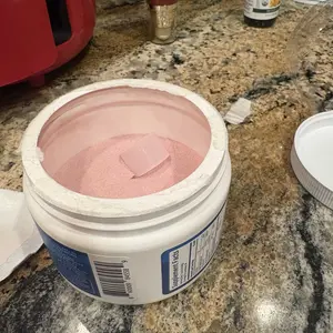 Damaged item; powder was falling out the container with lid semi twisted open and almost most product gone. Seal was on so I donāt know how that was even possible