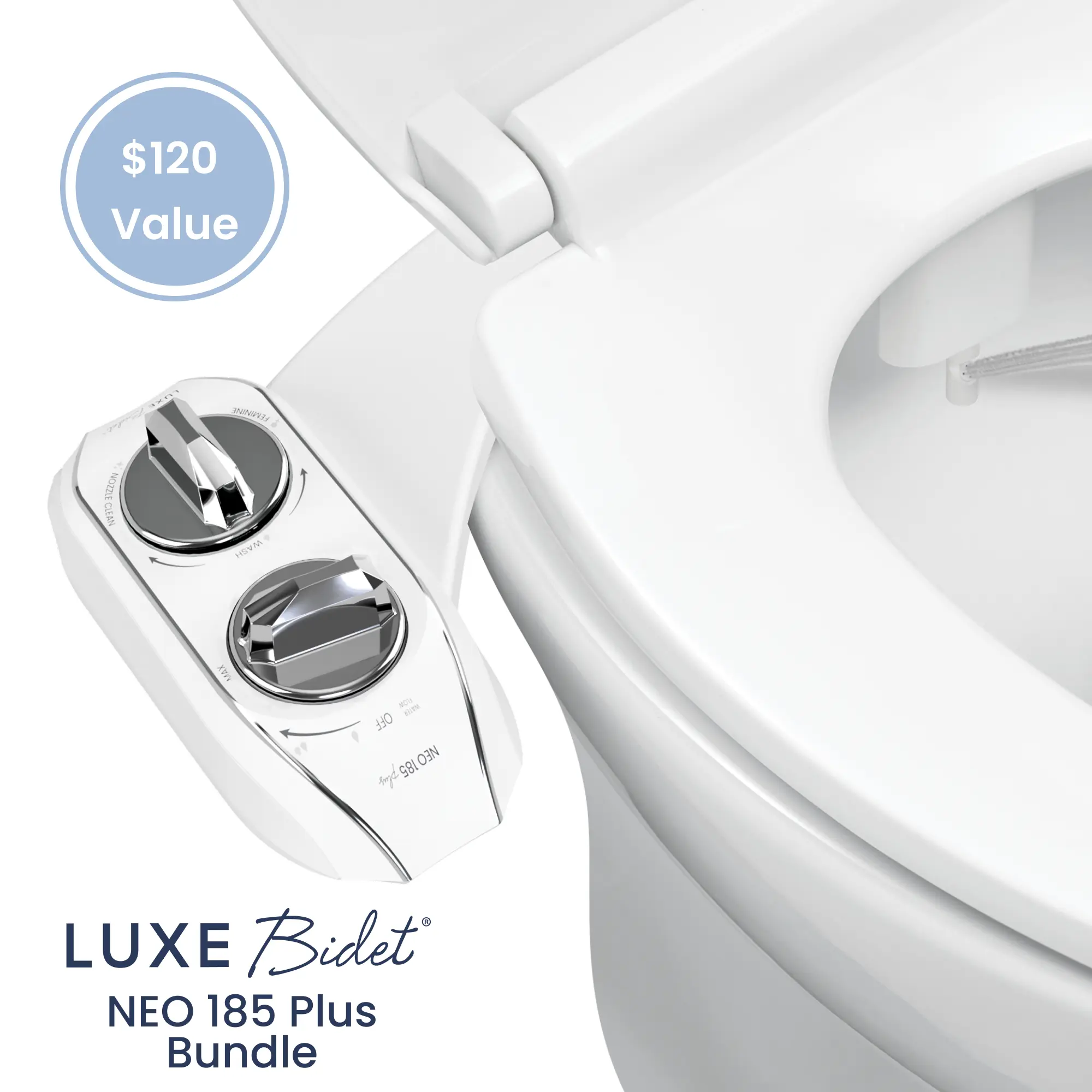 The LUXE Bidet® NEO 185 Plus is a cold water model from our newest line of innovative mechanical bidets. It's equipped with dual wash nozzles along with water pressure & mode selection knobs that are simple to operate.