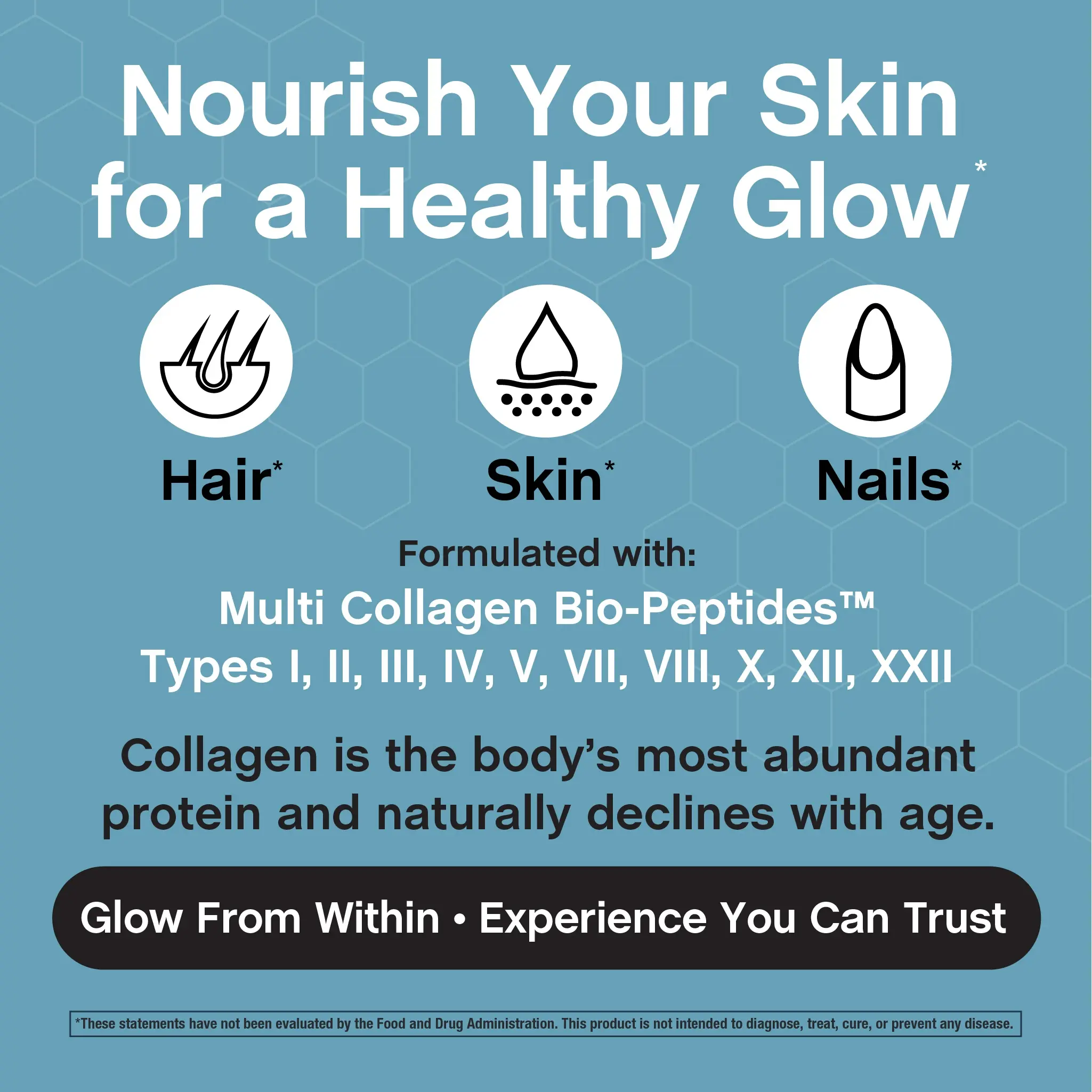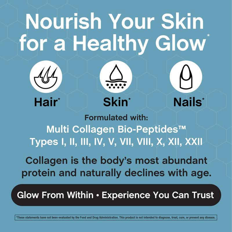 ·Advanced Multi Collagen: With each scoop, youâll find ten different types of collagen, plus hyaluronic acid and vitamin C, all working together to support healthy hair, skin, nails and joints.*