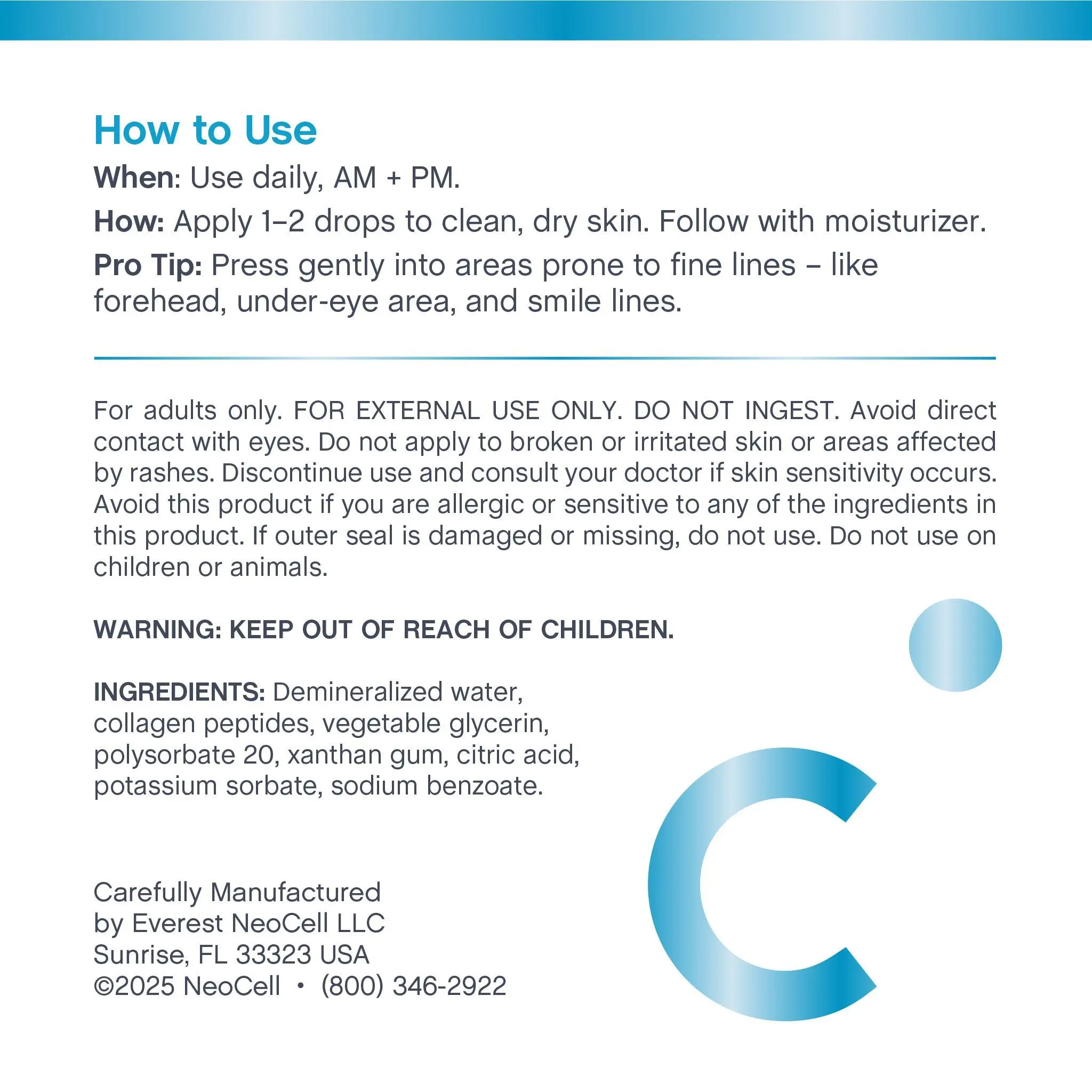 This easy-to-use topical serum is designed to be applied directly to clean skin and easily incorporated into your daily skincare routine. Plus, it’s non-GMO and free of parabens, SLS, petroleum, mineral oil, gluten, artificial colors, and fragrances.