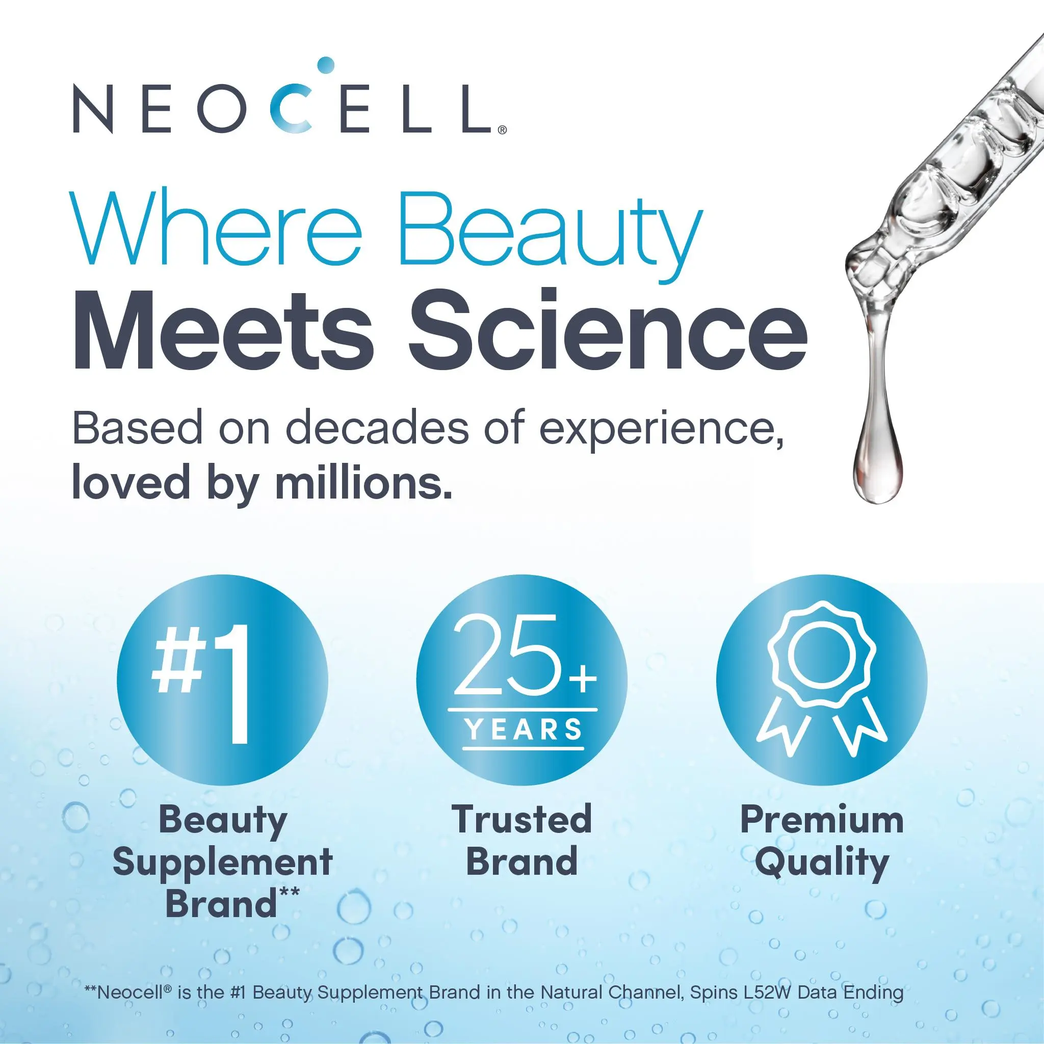 For nearly 30 years, NeoCell has been a trusted leader in unlocking the transformative benefits of collagen and essential nutrients. Trusted by millions, our products are based in science and designed to illuminate your inner beauty in a way that stands the test of time.*