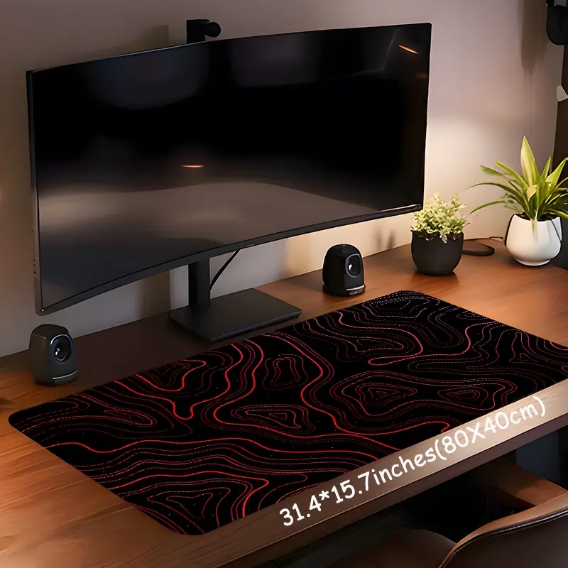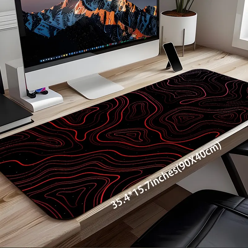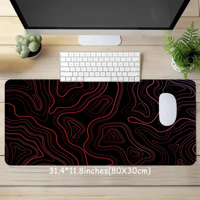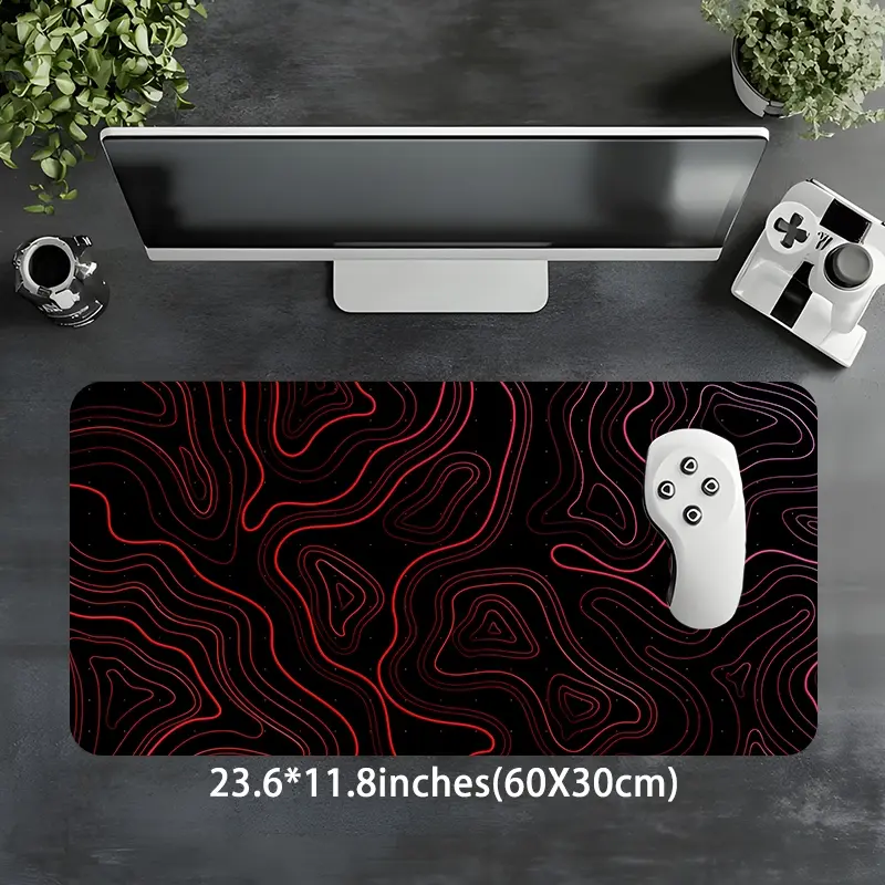 Neon Abstract Red Geographical Contour Lines Large Gaming Mouse Pad,Aesthetic Desktop Drotection Pad,Washable Rubber Pad Non-Slip Lock Edge Multi-Size Mouse Pad Suitable For Home Office,Good Gift for Family and friends,Desk Accessories