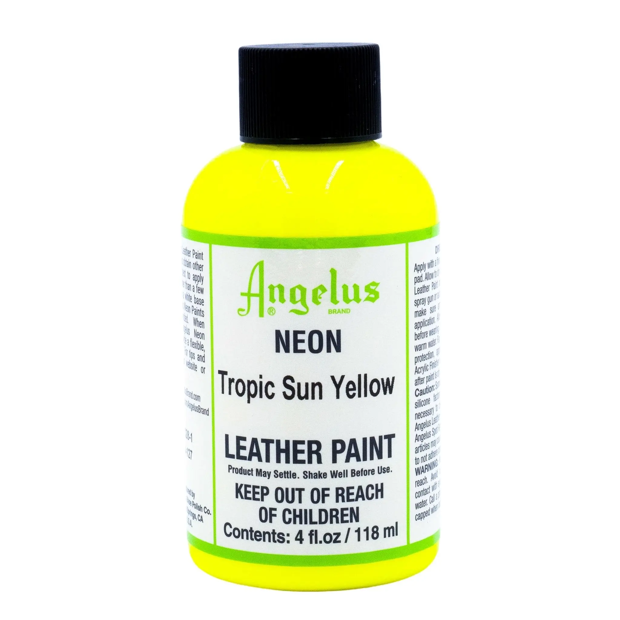 This color is not as “neon” as I expected it to be after 2 coats on a blank piece of veg tanned leather but it is smooth to apply and it is very nice. I love my Angelus paints