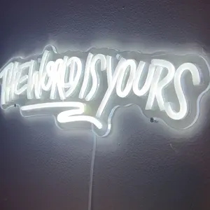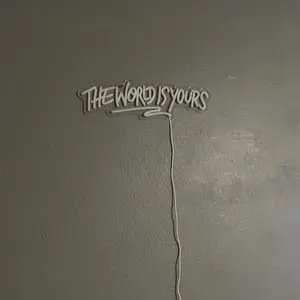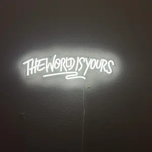 ăNeon Glowă: Showcase the vibrant glow of 'THE WORLD IS YOURS'. The neon lighting adds a captivating element to any room.