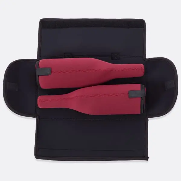 Whether you’re heading to a dinner party or a weekend getaway, our Neoprene BottleGuard Wine Carrier ensures your bottles stay secure and insulated for up to four hours. Our double layer design includes a burgundy neoprene sleeve that slips onto your bottle and black outer carry case  that wraps around it for a snug fit. Complete with a handle, you can quickly pack your bottles in your bag or easily carry them when you’re on the go.  California Residents: PROPOSITION 65 WARNING