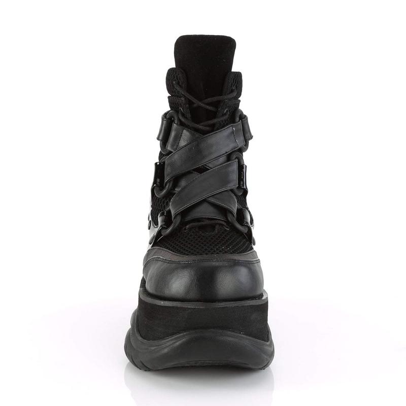 Demonia Men's Neptune-126 Black Vegan Leather-Fishnet Fabric-Patent Ankle Boots