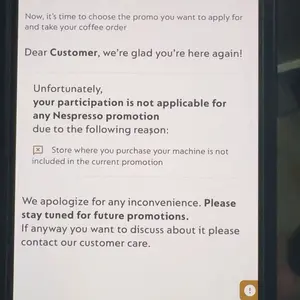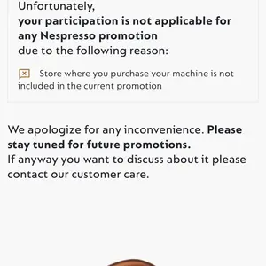 i bought this machine as the advertisement said free capsule after order as i was trying to redeem it it says my machine is not qualified.