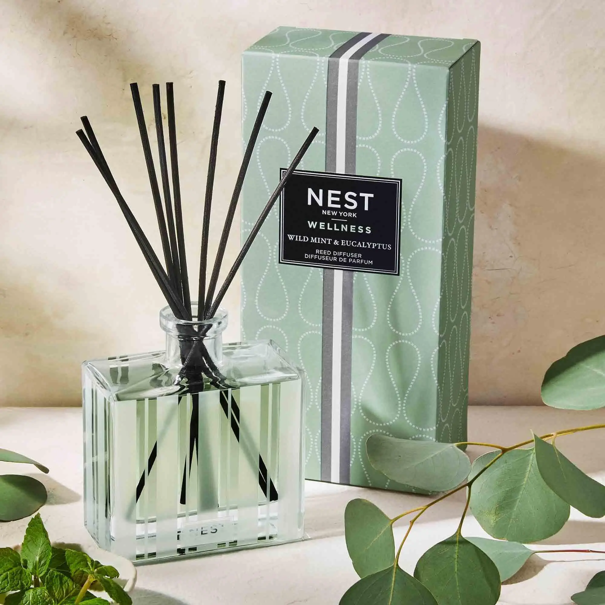Welcome to a world where wild mint and eucalyptus come together in harmony. Our Nest Wild Mint & Eucalyptus Reed Diffuser brings a fragrant oasis to your space. It transforms your surroundings with the natural essence of these calming herbs. Perfect for winding down or setting a cozy evening mood, this diffuser is your perfect companion.