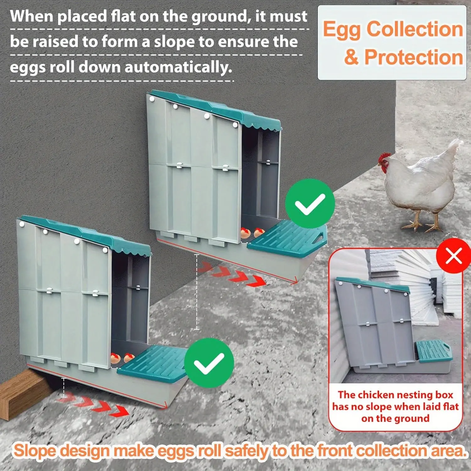 The quality of this product is not what I was expecting. They are larger than I was expecting based on what I bought from other vendors and types of nesting boxes being all plastic and a soft givable plastic at that they will not last very long with regular use with chickens if they're used at all