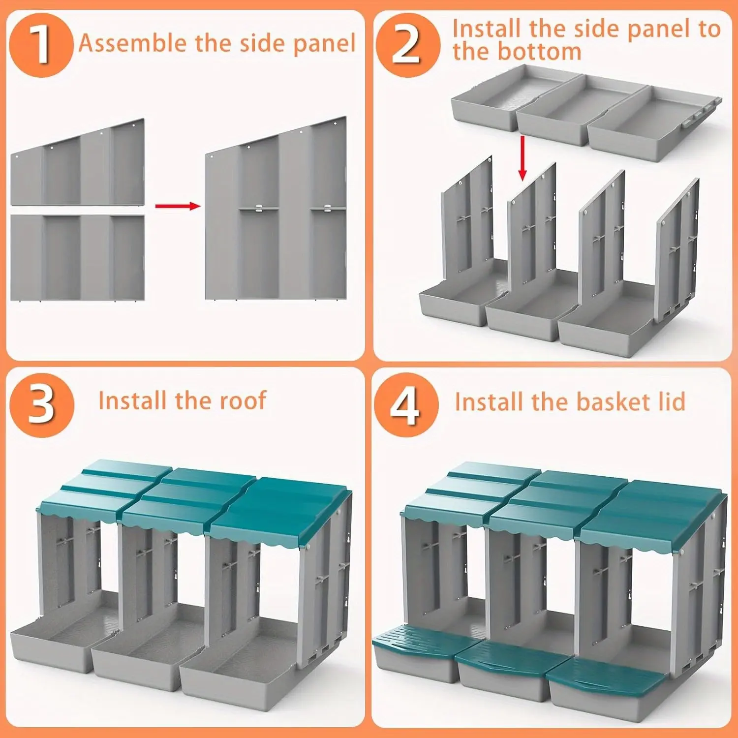 I had to use them as individual nest boxes due to the size of my coops and I can only utilize 2 out of 3 since there is no other siding panels to use the 3rd one individually