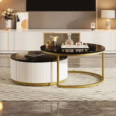·This coffee table set includes two round tables that nest together. 📐 It provides flexibility in arranging your space and offers additional surface area when needed. Perfect for versatile room setups.