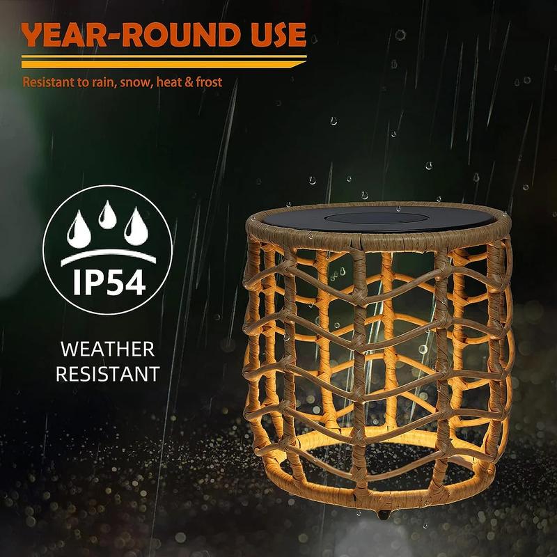 Utilizes solar energy, providing 25 lumens of warm light for up to 8 hours. Made with all-weather components and an IP54 waterproof rating, these tables are resilient for outdoor use. No assembly required, includes a 1-Year Warranty. 🌞