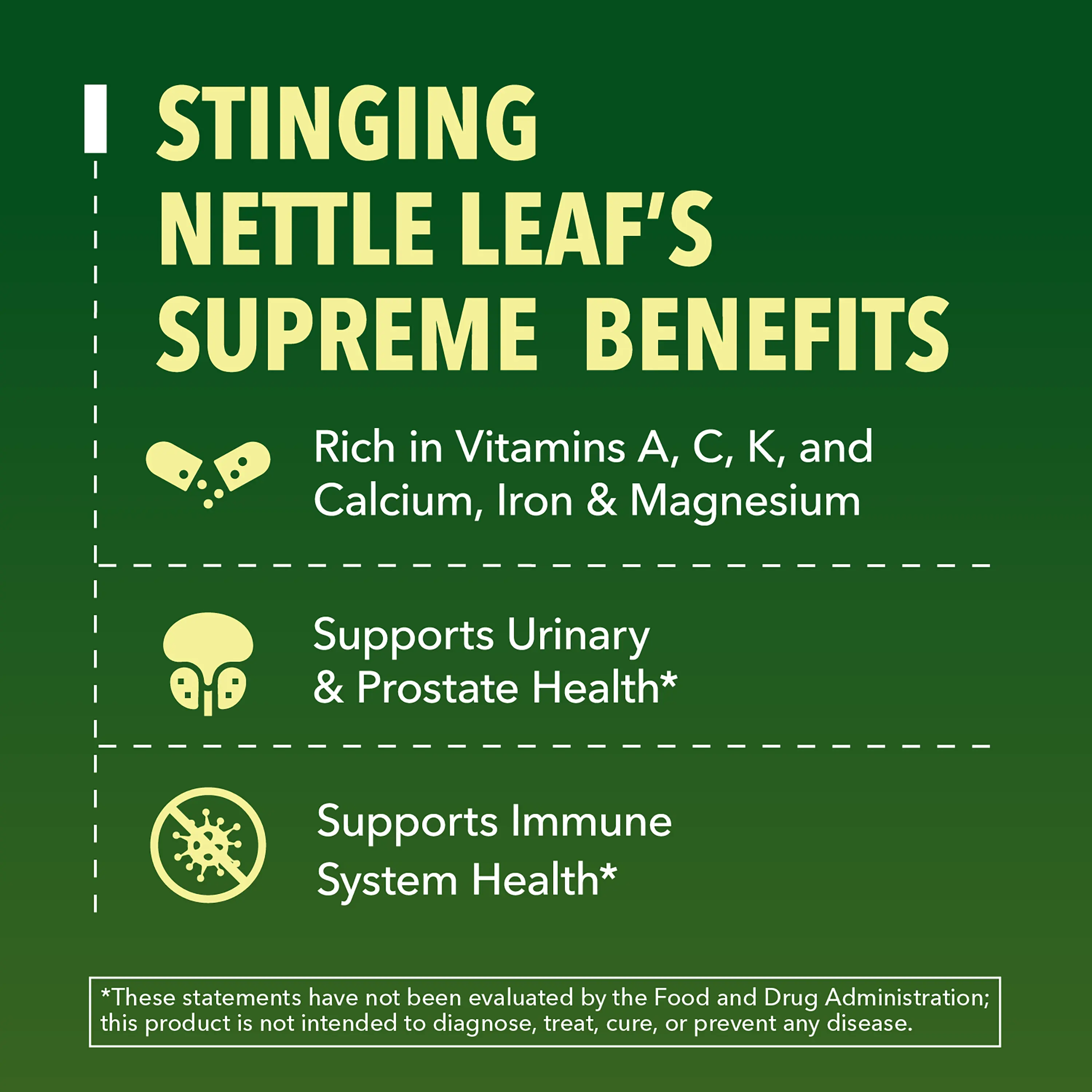 ·Overall Nettle Benefits: Stinging nettle root and leaf extracts support urinary, prostate, joint, and immune system health. Enjoy the natural benefits of nettle leaves in this one-month supply.