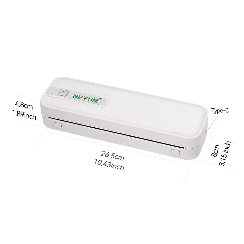 Netum Portable Thermal Printer, Wireless, Compatible with Various Roll Paper and Folded Paper, Inkless Printing, Ideal for Travel Office Home
