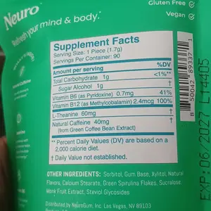 Love my Neuro Gum. Drink coffee in the morning and did not want to drink coffee in the afternoon. So Neuro Gum hits the spot in the afternoon with only 40mg of natural caffeine, hits just right.
