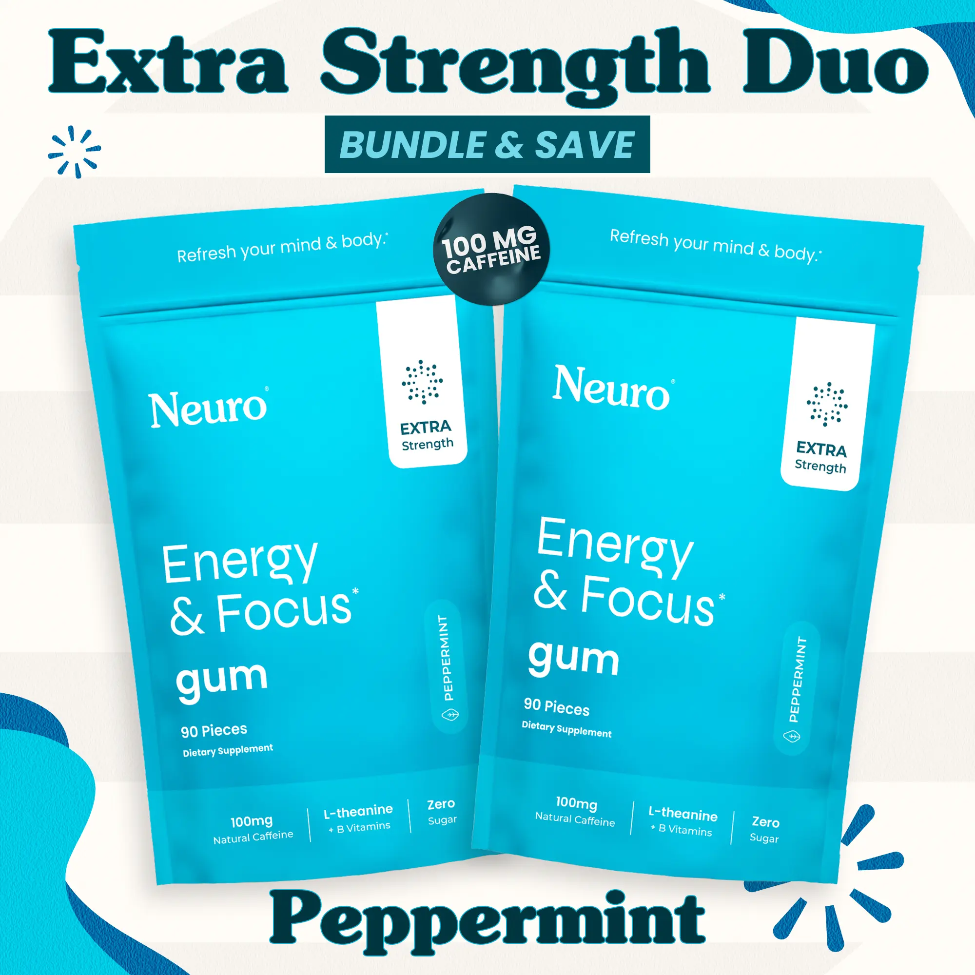 Peppermint Extra Strength Energy Gum Duo