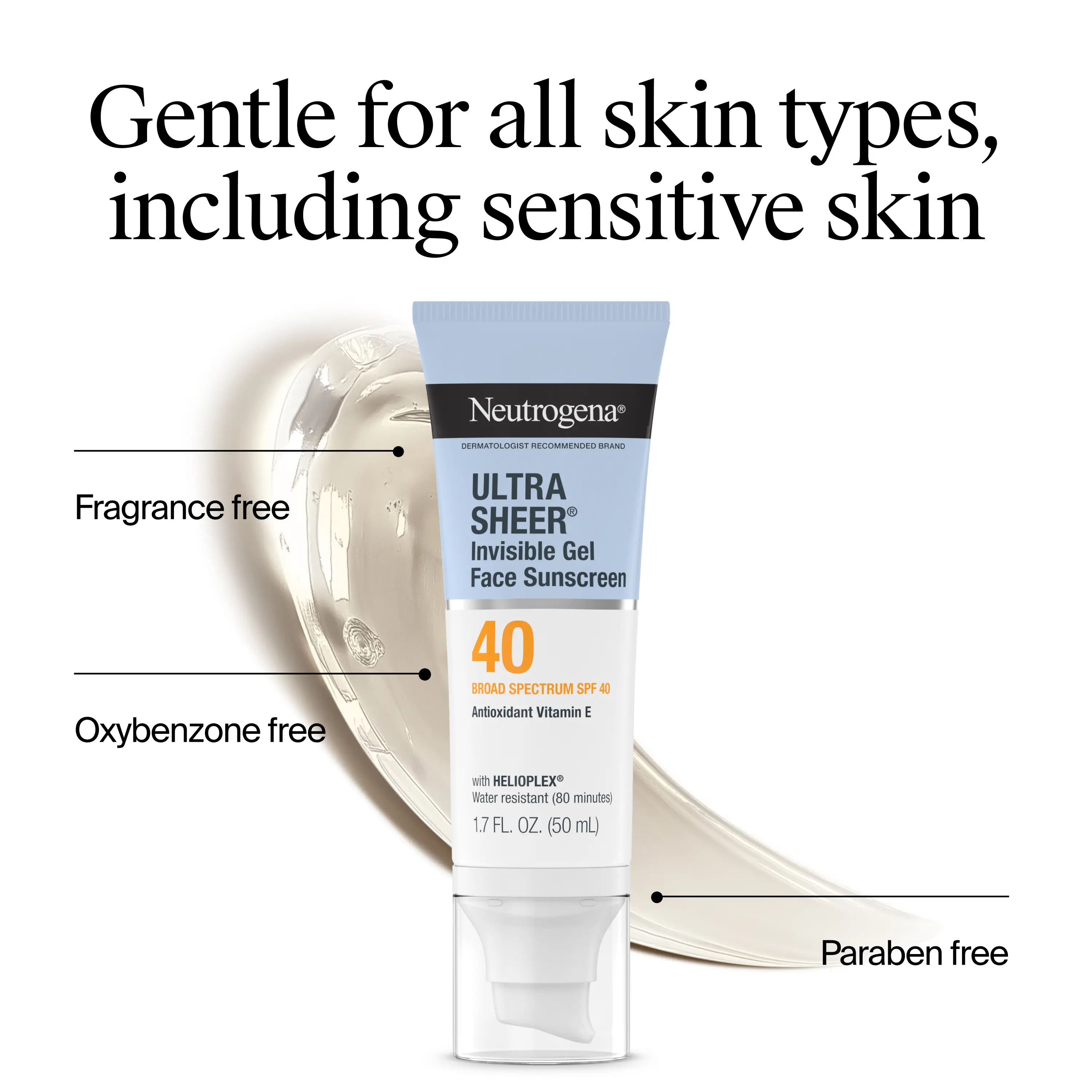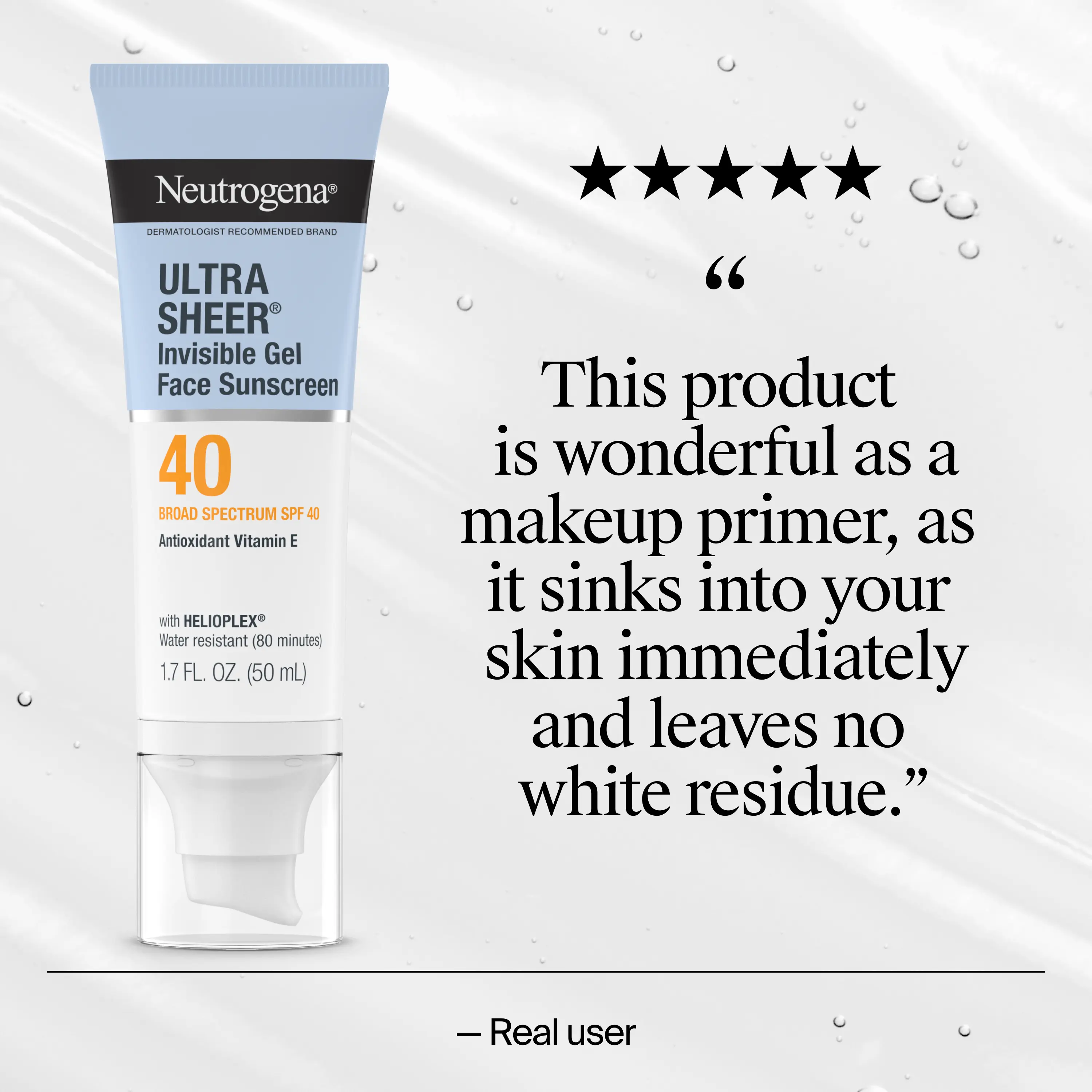 5. Neutrogena Ultra Sheer Invisible Gel Face Sunscreen Broad Spectrum SPF 40, 1.7 Oz