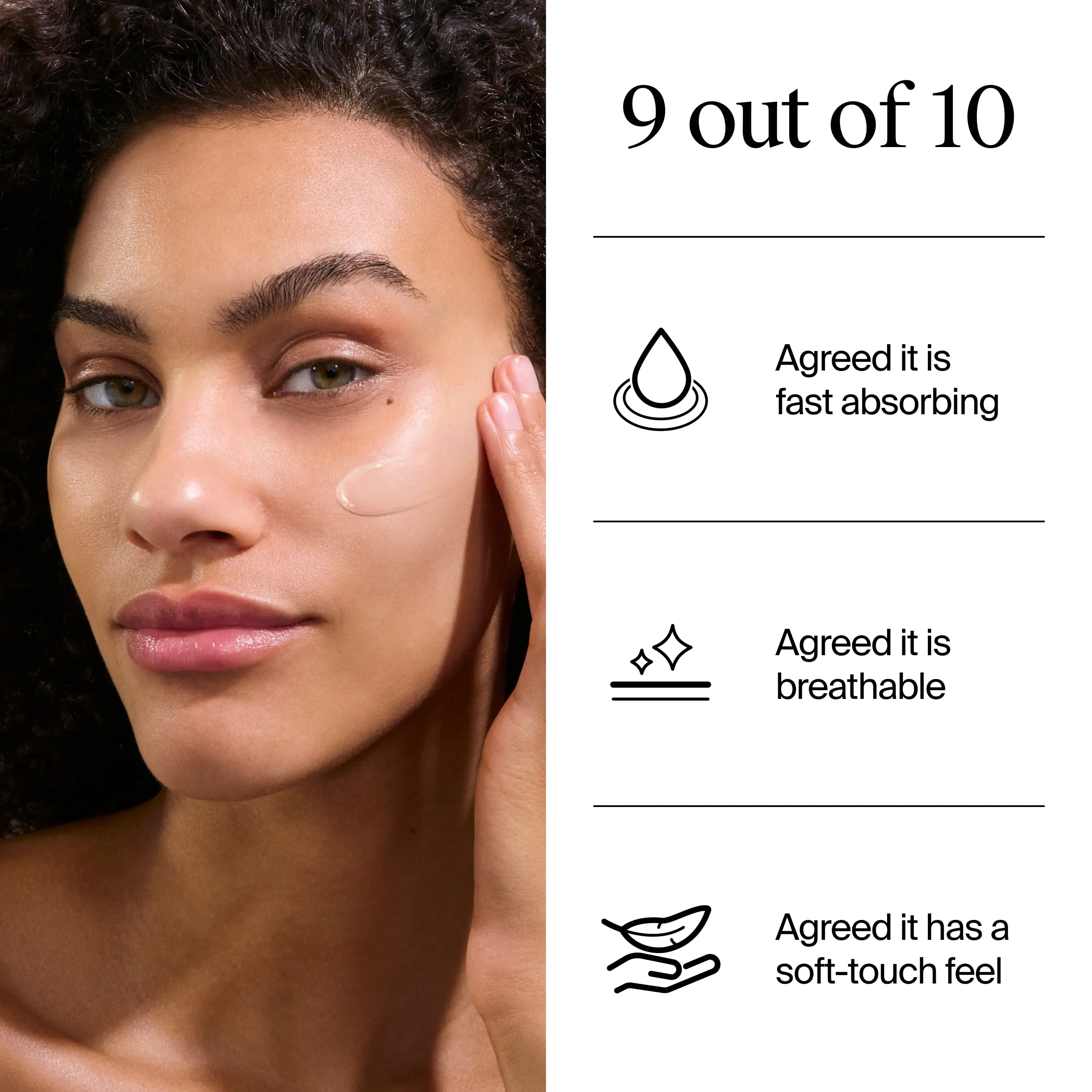 Lightweight facial sunscreen with SPF 40, Vitamin E, matte finish, primes skin, perfect under makeup. Fragrance-free face moisturizer with broad-spectrum protection for all skin types and tones.