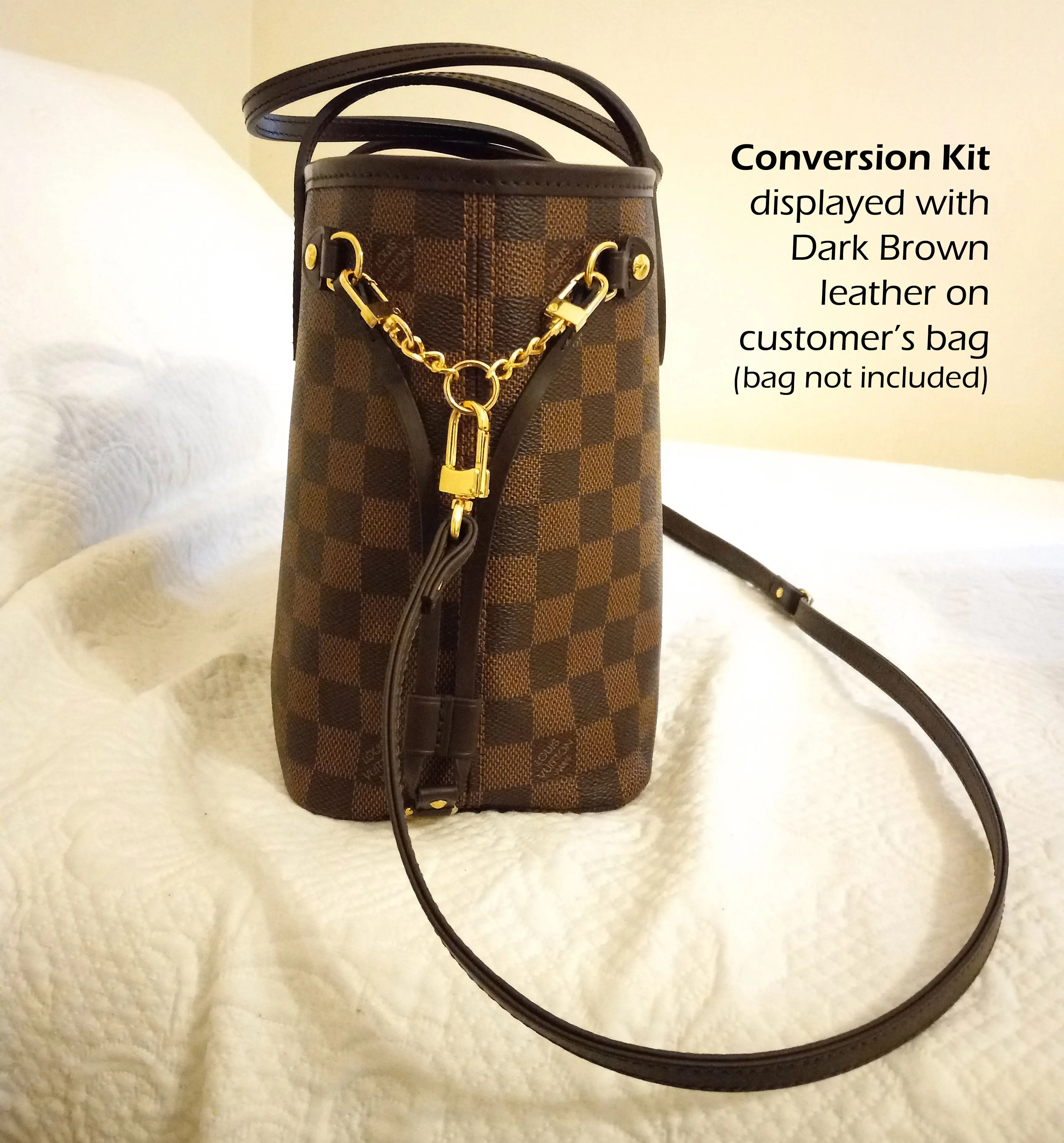 Quickly and easily convert your favorite go-to Neverfull tote to allow for comfortable crossbody style, with this custom kit developed by Mautto. No modifications to your bag necessary! Kit can be installed or removed in seconds.