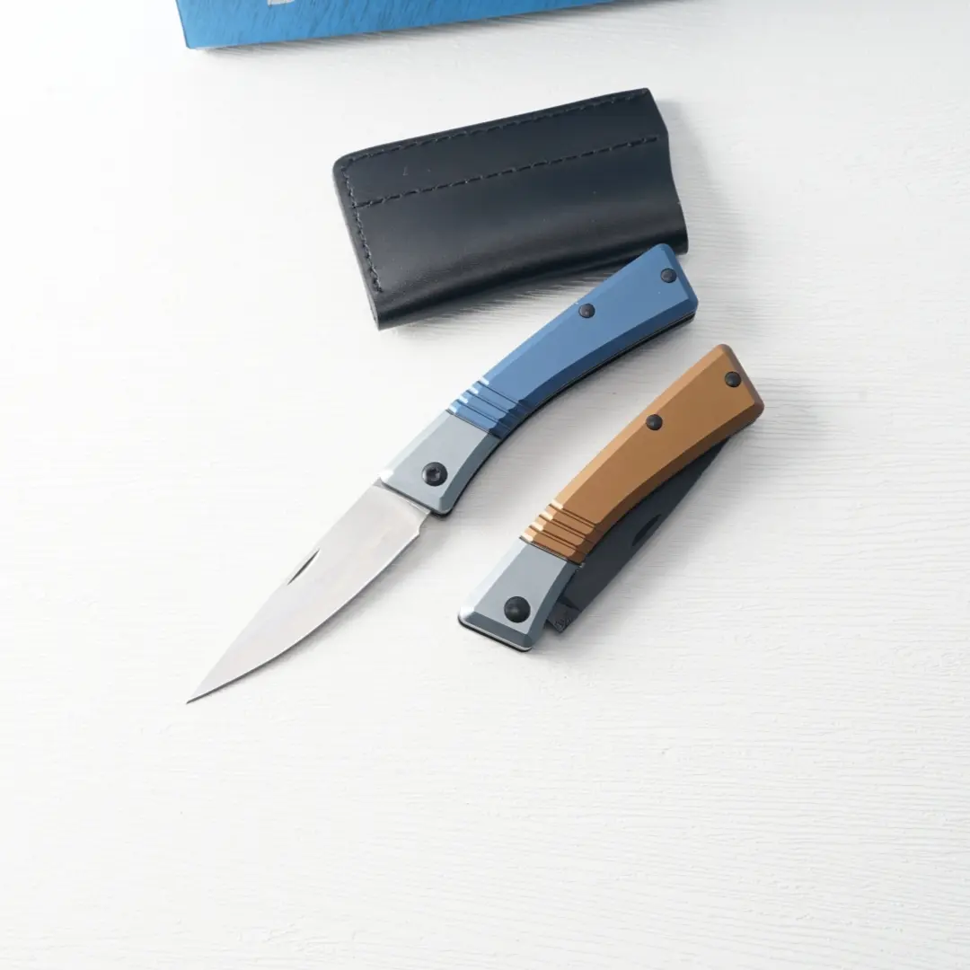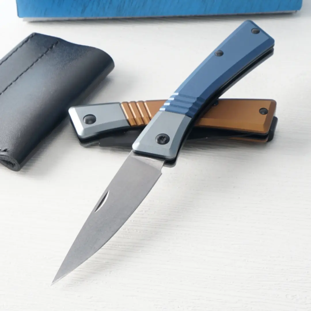 5. New 315 folding pocket knife with an aluminum alloy handle and a D2 stainless steel blade, includes a leather sheath; sharp cutting tool, fishing cutting tool, suitable for outdoor exploration, camping, and more; Valentine’s Day gift