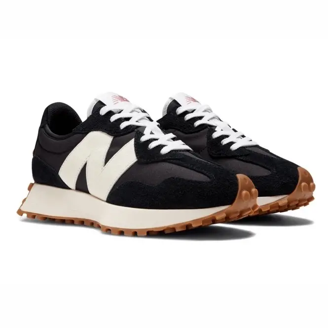 The New Balance 327 Black White Gum (Women's) combines retro running vibes with modern flair. Featuring a sleek black upper, crisp white oversized "N" branding, and a gum rubber outsole, this sneaker delivers bold style, lightweight comfort, and everyday versatility.