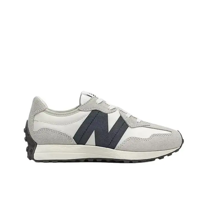 The New Balance 327 Sea Salt Black (GS) gives retro runner vibes with a modern twist. Designed for grade schoolers, it features a lightweight sea salt nylon and suede upper, oversized black "N" logo, and a rugged outsole for grip and everyday comfort. A stylish, versatile pair for growing feet.