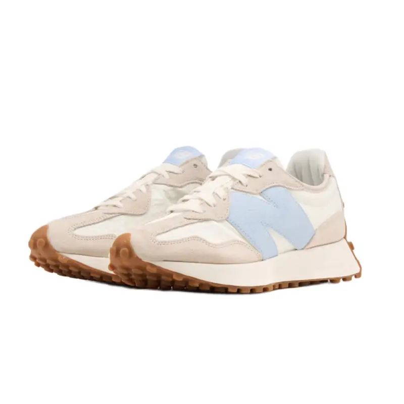 The New Balance 327 Timberwolf Sea Salt Light Chrome Blue (Women’s) delivers a modern twist on vintage running style. Featuring a suede and nylon upper in earthy Timberwolf with Sea Salt accents and a bold Light Chrome Blue oversized “N” logo, this sneaker blends retro charm with fresh detailing. A lightweight midsole and the signature lugged outsole provide comfort and traction for all-day wear.
