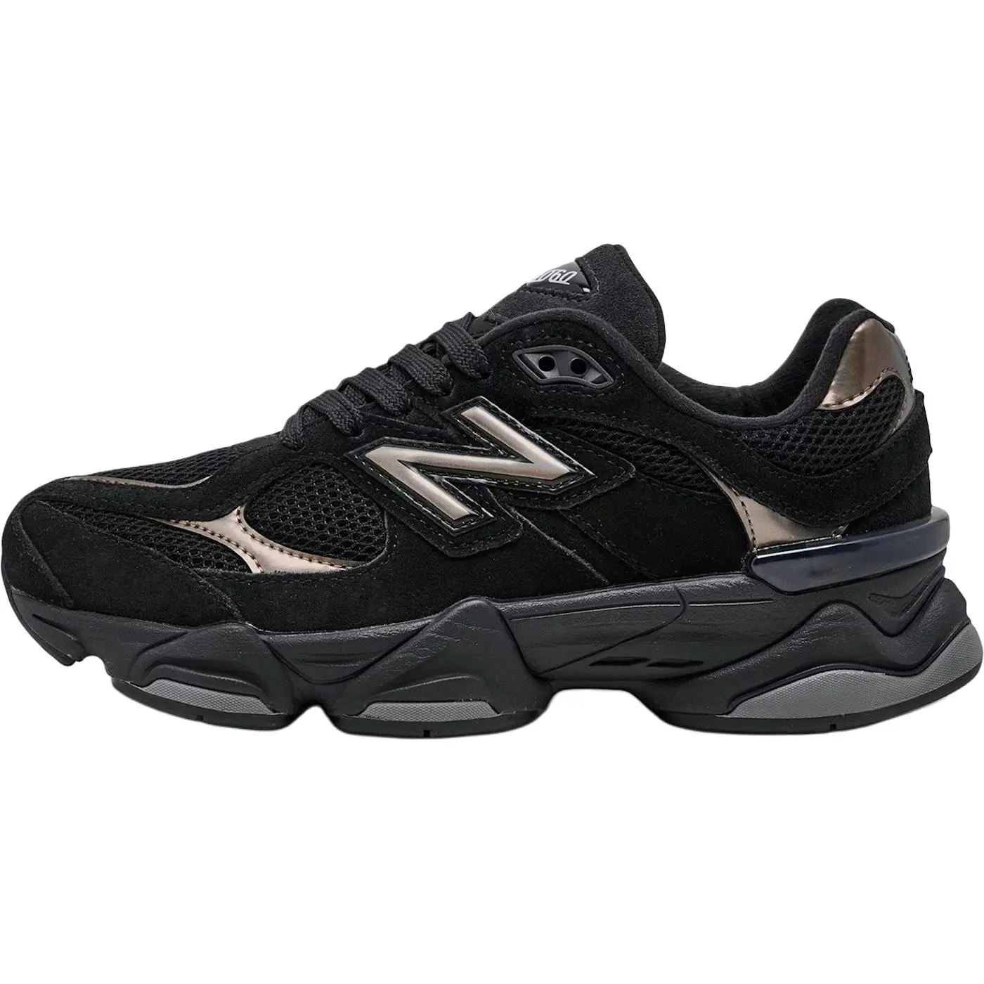 New Balance 9060 'Black Copper' – sleek, durable running shoes with a breathable mesh upper and cushioned midsole. Available in US sizes 6-13. True to size for most, but narrow fit recommended for wide feet. Ideal for daily wear and light training.