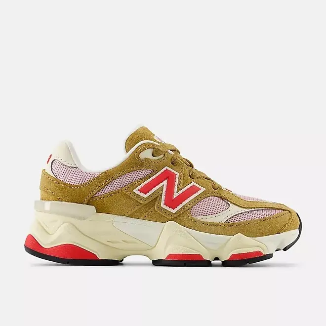 The New Balance 9060 Great Plains True Red (PS) brings a vibrant update to the classic 9060 silhouette for preschoolers. Featuring a breathable mesh upper with suede overlays in earthy tones and bold red accents, this sneaker offers both style and durability. The cushioned midsole ensures comfort for active play, while the rubber outsole provides reliable traction.