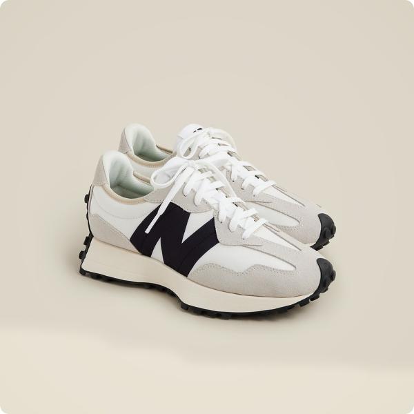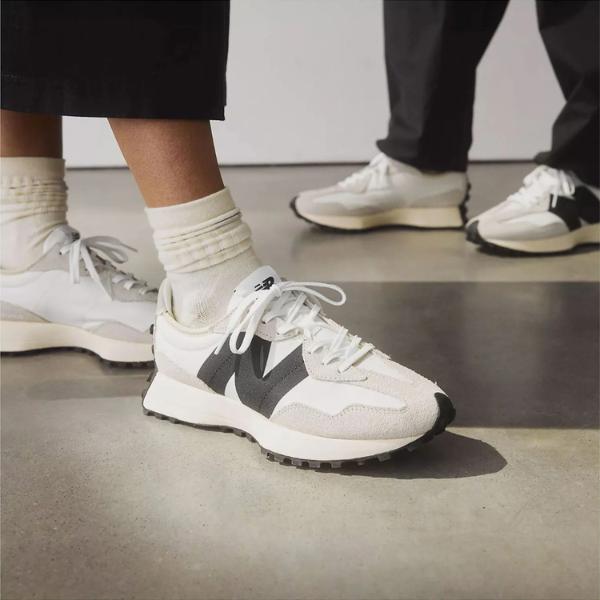 5. New Balance Women's 327 White/Black Sneaker with Suede & Nylon Upper