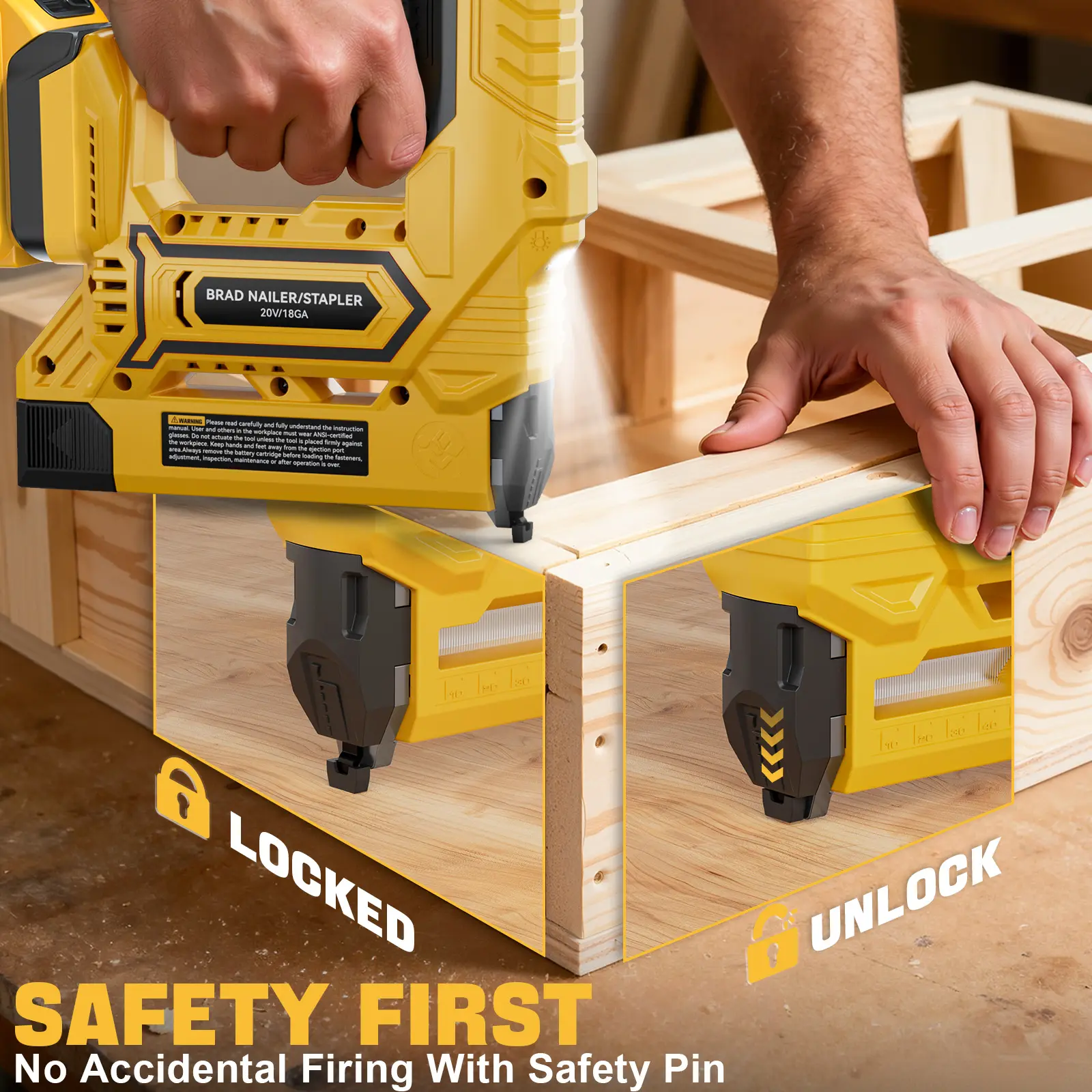 【Brushless Brad Nailers】 - Utilizes a brushless motor for maximized runtime and durability. Equipped with overload, overheat, and low power protection, ensuring reliable firing power across diverse materials and climate conditions