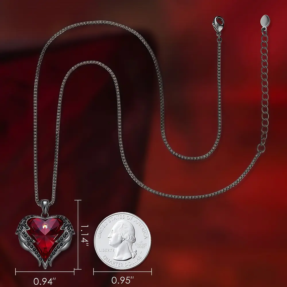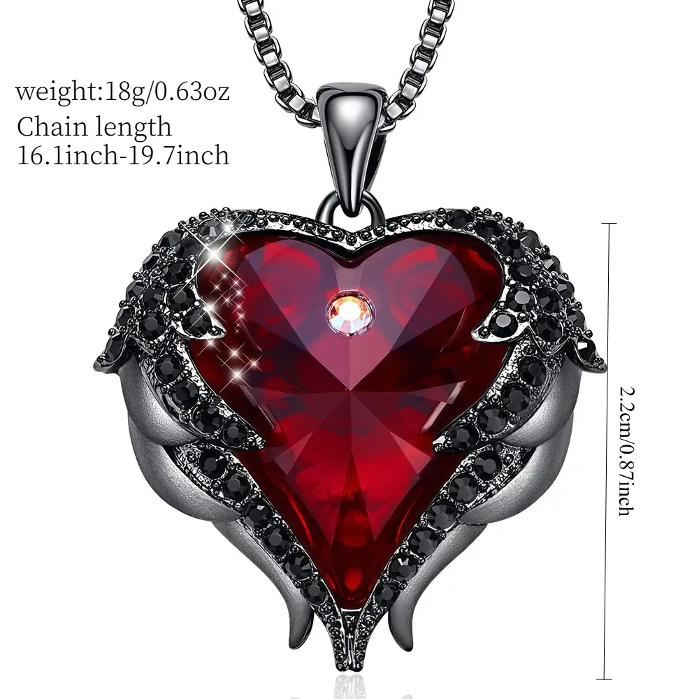 ·Elegant DesignThis necklace features red heart and blood diamond wing pendants.Great for those who love gothic style.