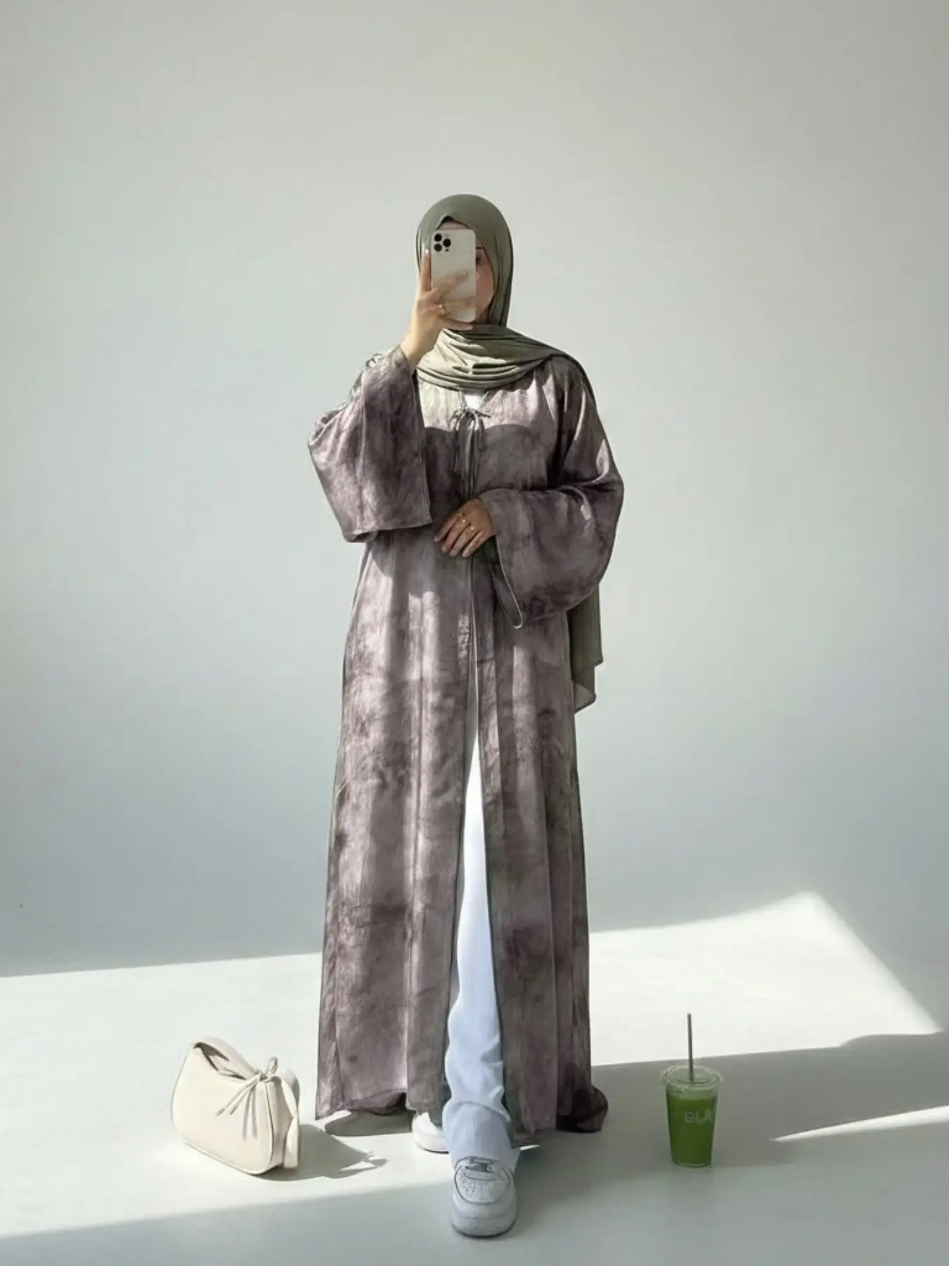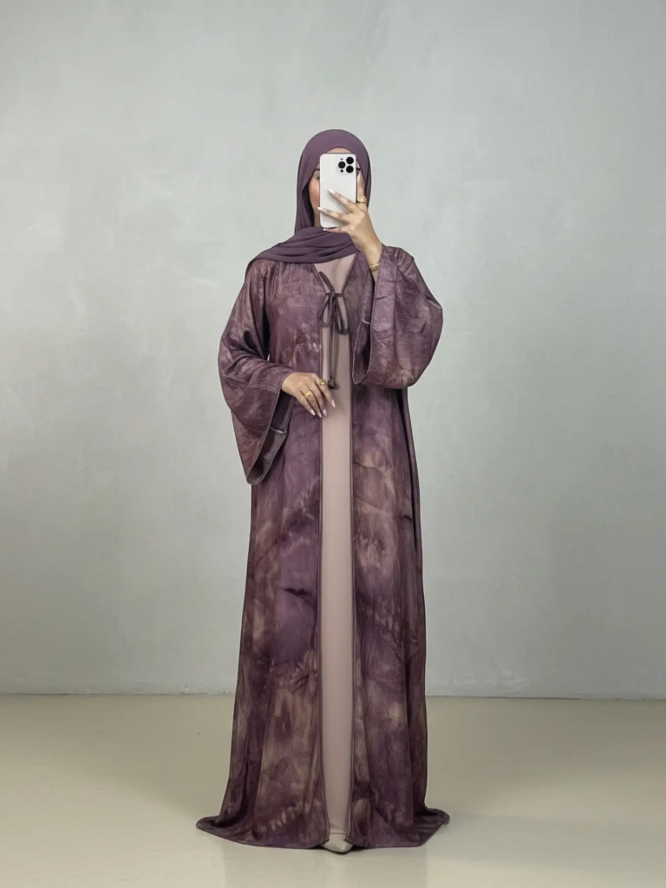 【Floral Pattern】: Adorned with a unique tie-dye pattern, this abaya adds a distinct artistic touch that differentiates it from others.
