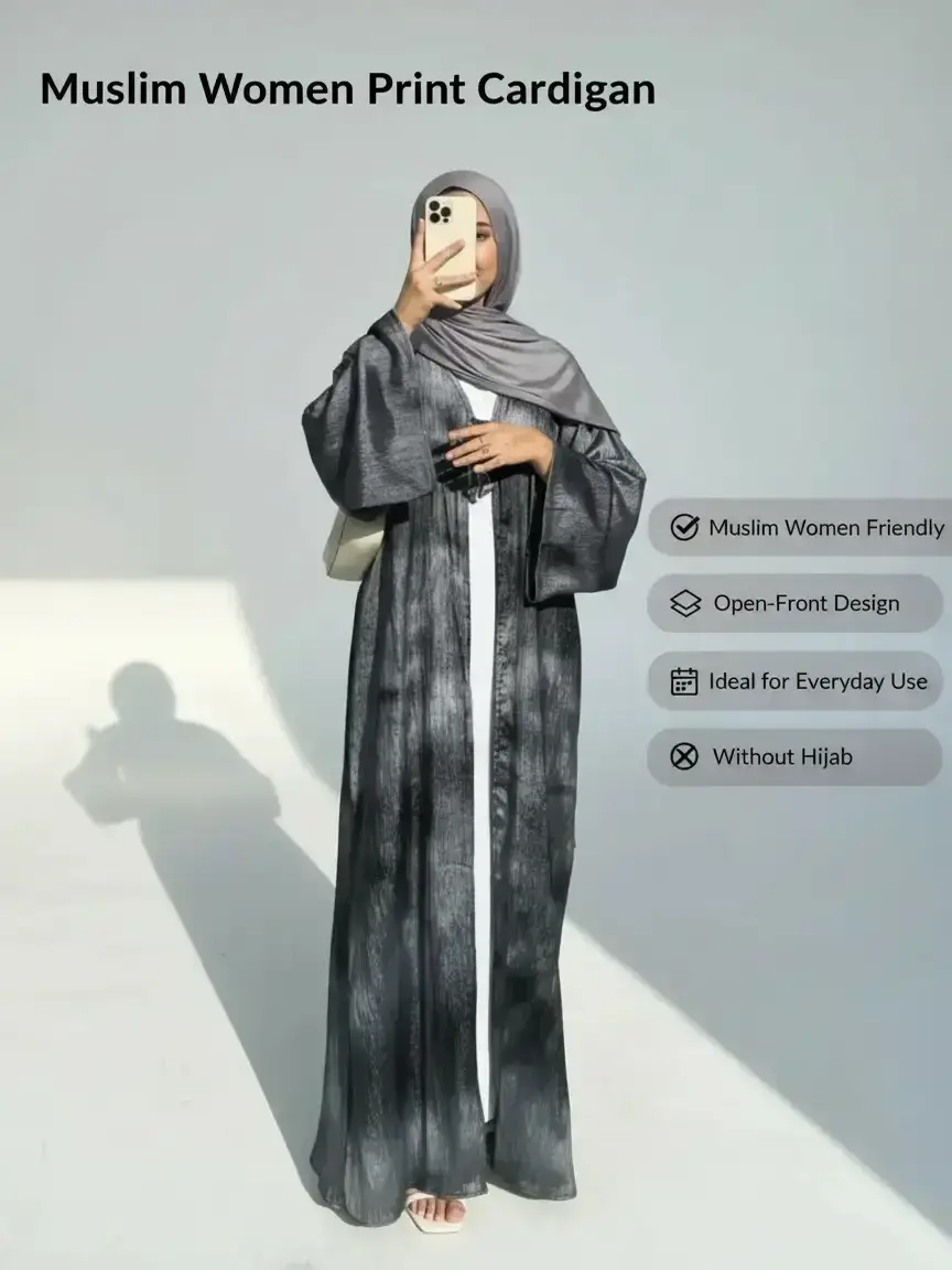 5. New Design Muslim Women Printed Long Cardigan Open Front Abaya, Elegant Comfortable Design, Perfect for Daily Wear, No Hijab Included