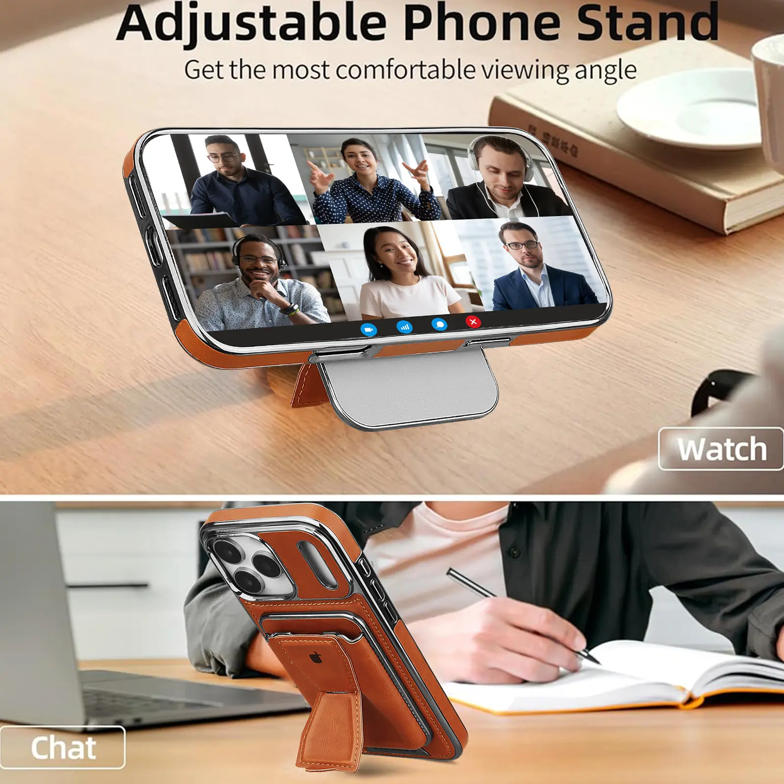 📱 New Genuine Leather Magnetic Card Bag Stand Phone Case