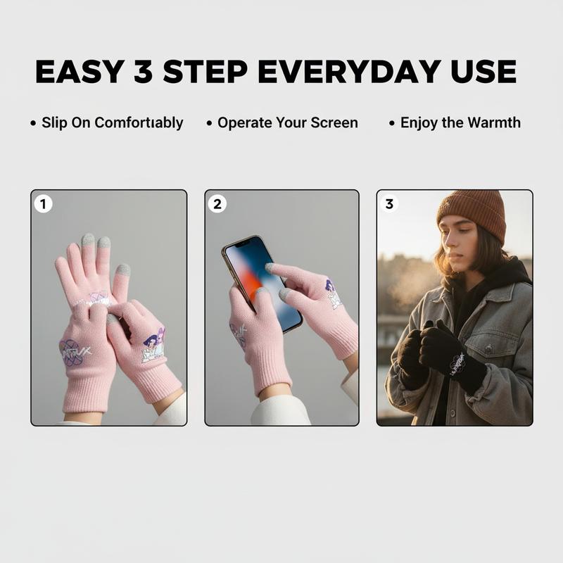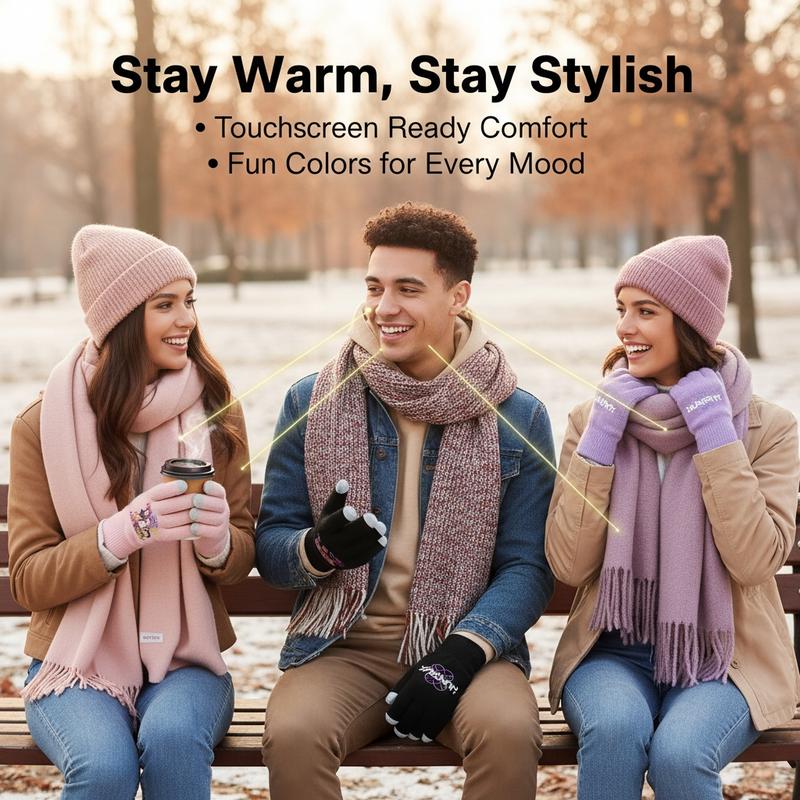 New K-Pop Demon Hunters Girl Group Print Gloves, Teenage Girls Fleece Gloves, Same Style as K-Pop Demon Hunters, Fashion Accessories