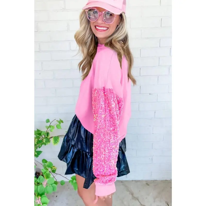 This Sequin Patchwork Long Sleeve Pullover Top is designed to turn heads with its dazzling sequin patchwork/Made from high-quality materials, this top keeps you warm and stylish during colder seasons/With long sleeves and pullover design, this top is perfect for layering or wearing on its own/It effortlessly transitions from day to night, making it a versatile addition to your wardrobe/Size Chart (CM)/Sizes/Bust/Shoulder/Sleeve_Length/Length/Hem_Width/Relax/Relax/Relax/Relax/Relax/S/104/59/52/66/94/M/110/62/52. 5/68/100/L/116/65/53/70/106/XL/124/69/53/72/114/Elasticity/Medium-High/Size Chart (INCH)/Sizes/Bust/Shoulder/Sleeve_Length/Length/Hem_Width/Relax/Relax/Relax/Relax/Relax/S/40. 9/23. 2/20. 5/26. 0/37. 0/M/43. 3/24. 4/20. 7/26. 8/39. 4/L/45. 7/25. 6/20. 9/27. 6/41. 7/XL/48. 8/27. 2/20. 9/28. 3/44. 9/Elasticity/Medium-High