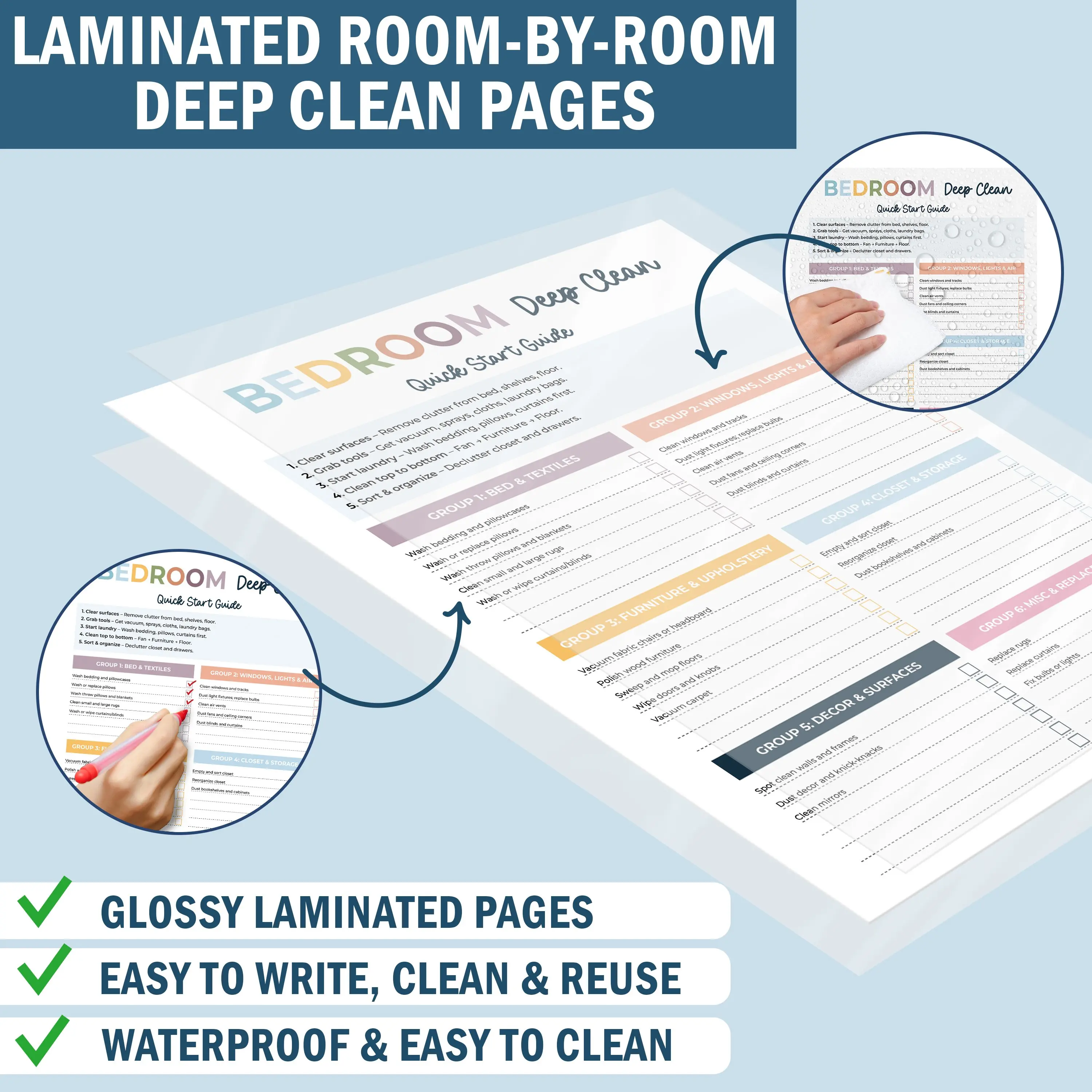Excellent cleaning planner. The deep cleaning guides are laminated and it will be useful in organizing tasks. Major upgrade to the original!
