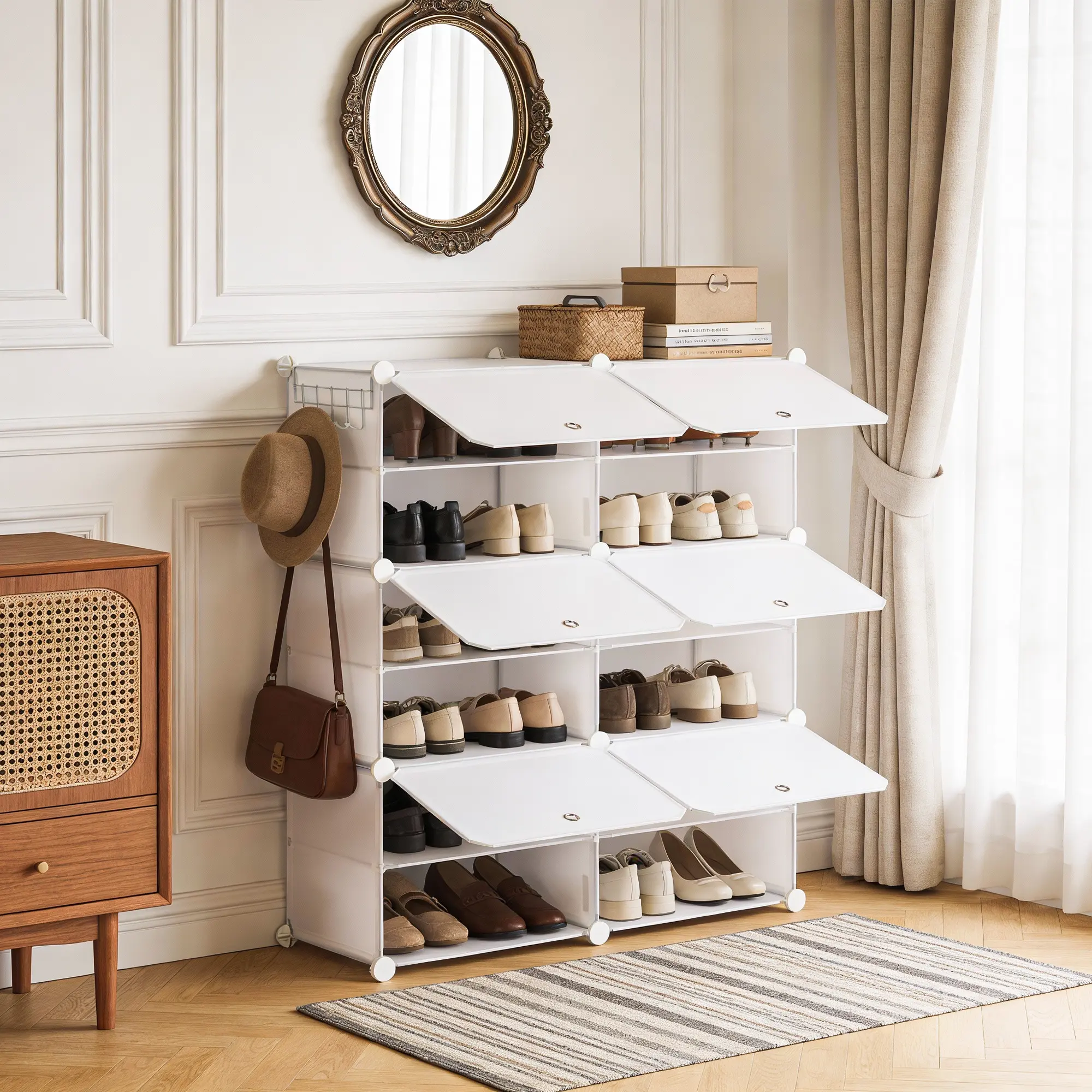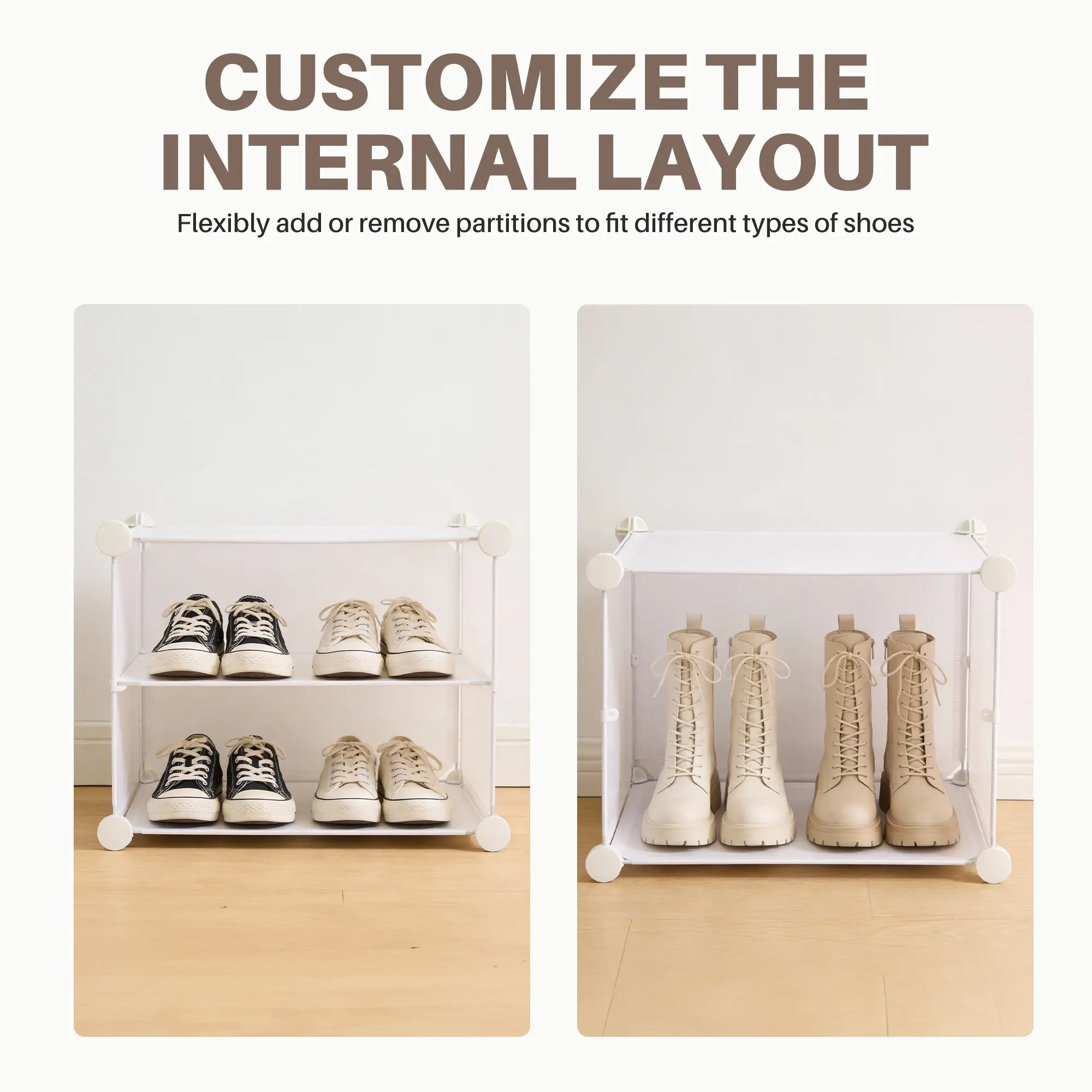 ·【Easy-Clean & Ventilated Design】Crafted from waterproof plastic, the shelves are incredibly easy to wipe clean with a damp cloth. The ventilated design promotes excellent air circulation, which helps prevent odors and keeps your shoes and the storage area fresh.