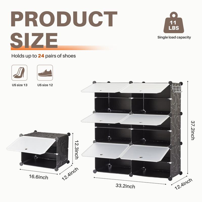 ·【High-Capacity Storage & Space Saving】This 6-tier shoe rack offers an ample storage solution, capable of organizing up to 24 pairs of shoes. It's perfectly designed to store everything from sports shoes and boots to handbags, effectively eliminating clutter and saving valuable floor space in your home.